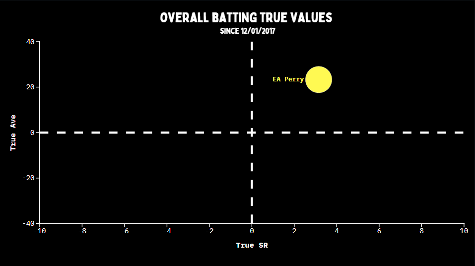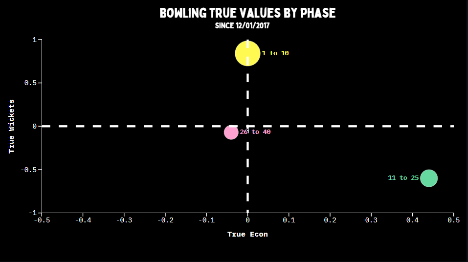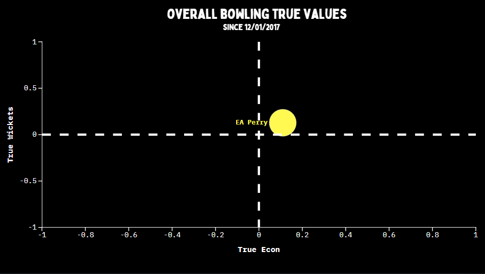 On true values - which we only have since 2017 - she rates as a plus on both metrics, but barely. You wouldn’t want this from your first-choice bowler, but from your third, fourth, or even sixth-best option, it’s massive.