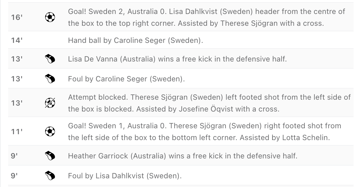 Sjögran scores for Sweden after 11 minutes, Dahlkvist’s header is 16 minutes in. And Australia are 0–2. You are going to struggle to come back from that.