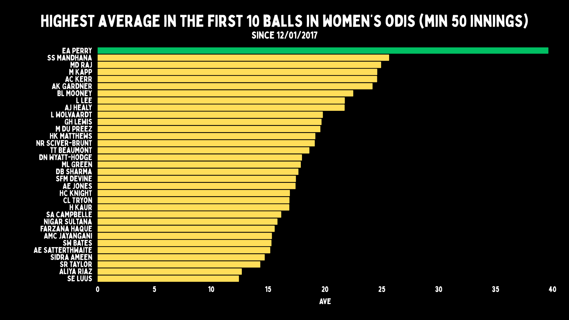 It means she goes through her process every time, and part of that is being almost impossible to dismiss at the start of her knock. She averages nearly 40 in her first ten balls - an absurd number when beginnings are meant to be hard.