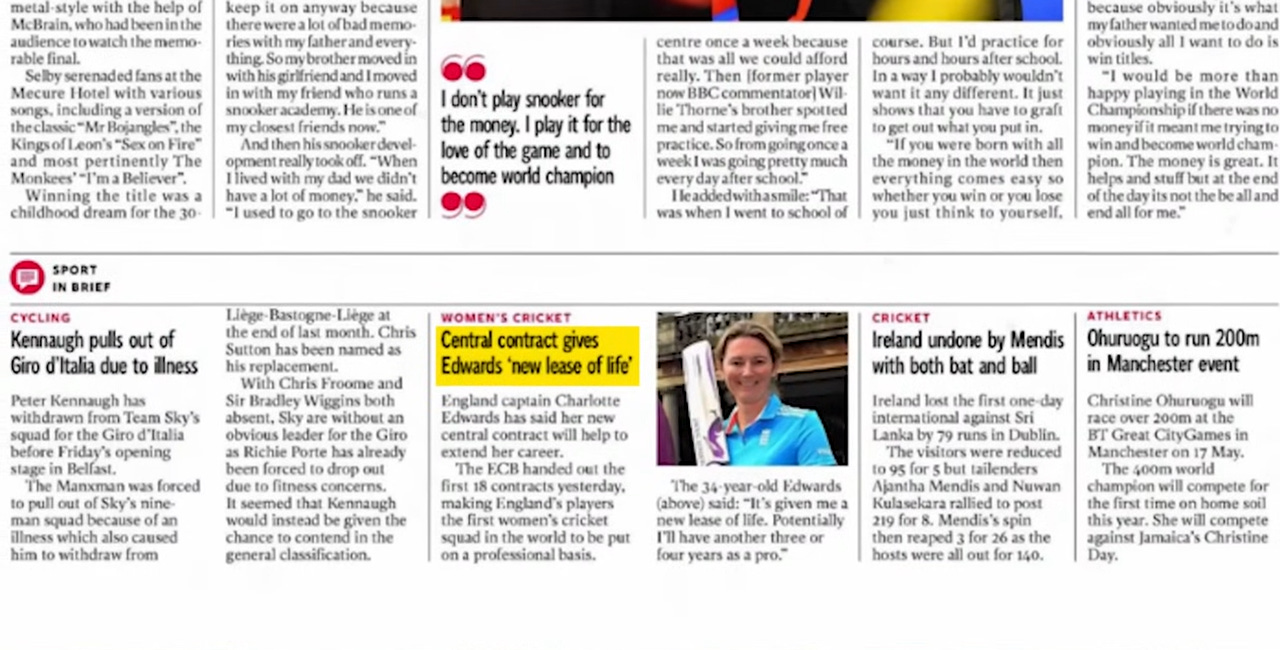 Barely out of her teens she was a great player and a global ambassador for women’s cricket. All as an amateur. The money comes next, almost as if women’s cricket becomes professional in her honour.