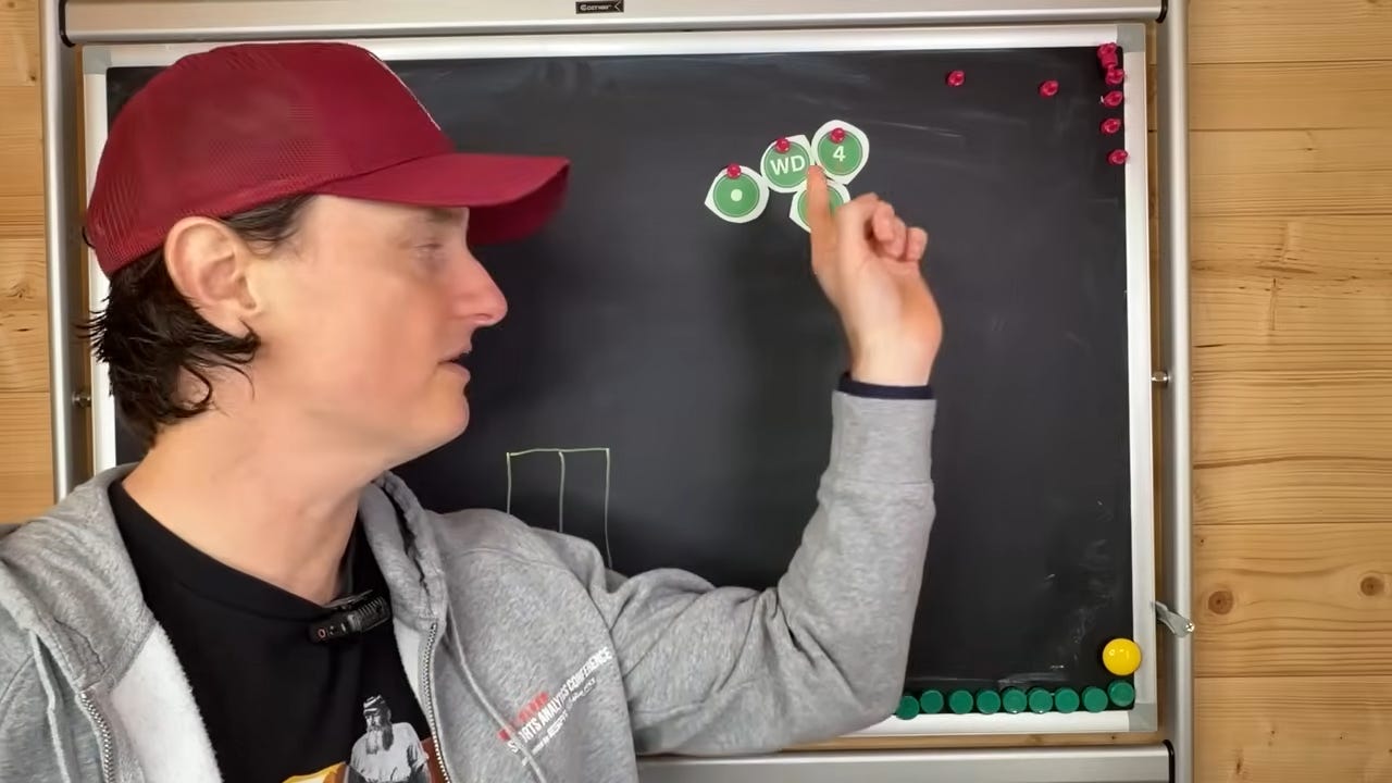 The answer is that the ball went soft and so they started to bowl slow, short, and wide bouncers. And when you bowl those, you’re a chance of bowling it too wide and getting it wide, or you’re a chance of bowling it too short and getting it wide.