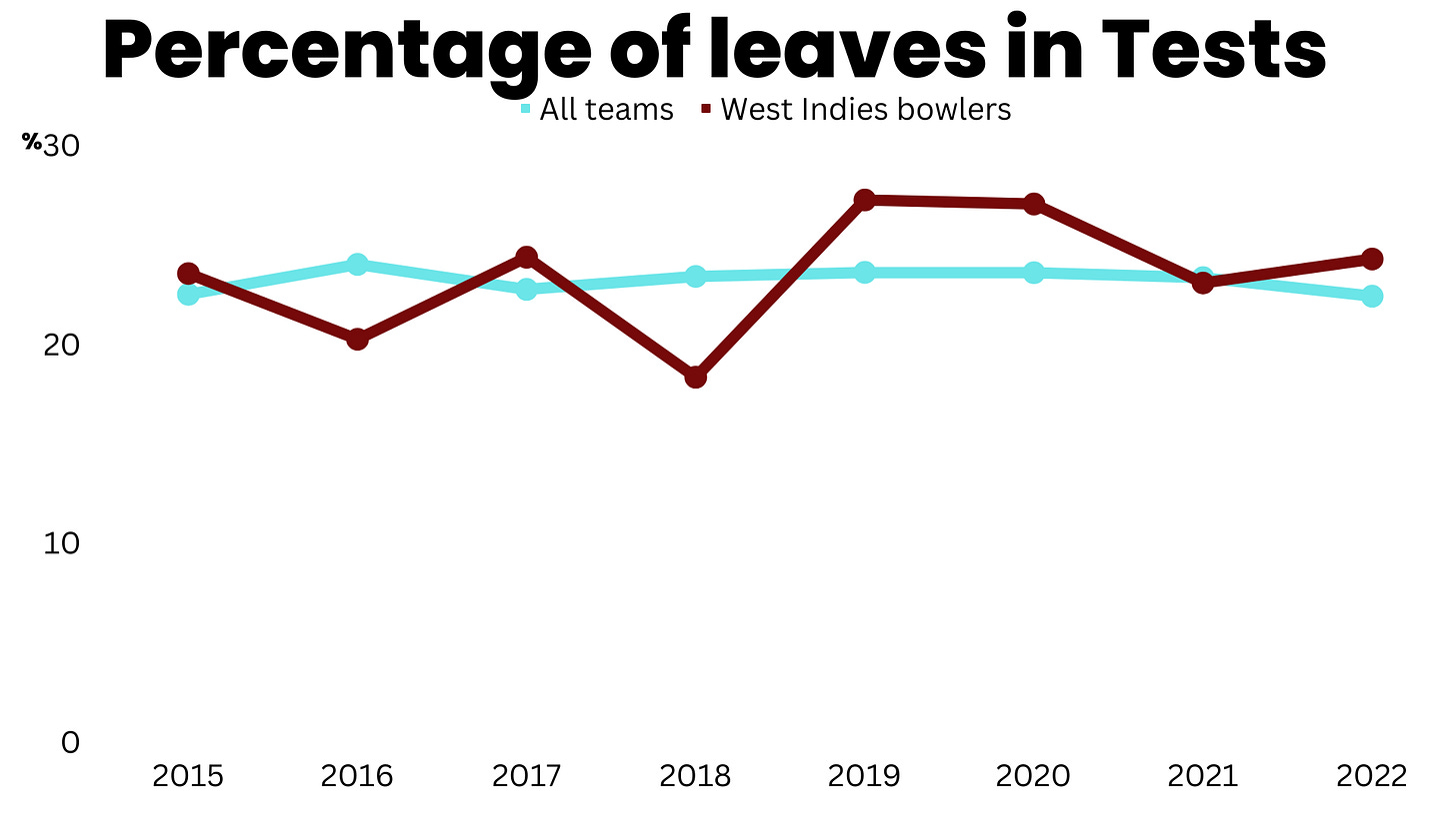 I think the West Indies is one of the least attacking and most patient attacks in the World. In an era when players seemingly like to get bat on ball, it makes sense to hang the ball wide. However, in modern cricket, bowlers have been going fuller and straighter, using the unpredictability of the wobble ball, but also just giving themselves more chance of LBWs.
