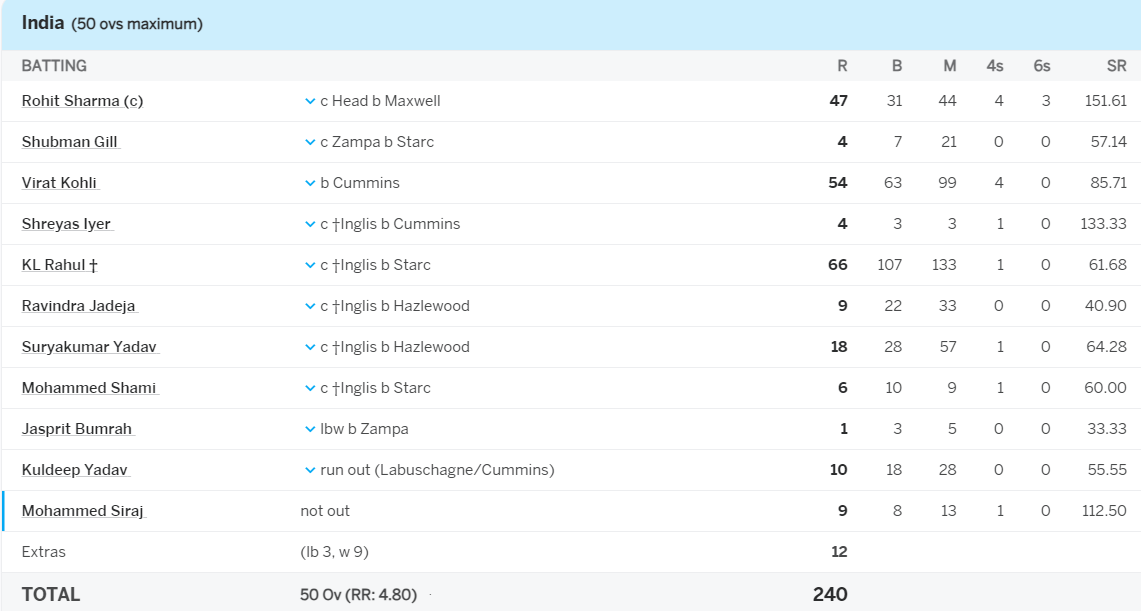 It will be interesting to see the final narrative on KL Rahul. In some ways, his innings is what gave India a chance to win. But KL and Virat did bat slow after the Powerplay, especially KL. But so did Marnus. Probably one of him or Virat should have gone harder, while the other took it deep. Obviously, that didn’t happen today because of the conditions, how well Australia bowled, and also that India slowed down on purpose because of those 3 early wickets.