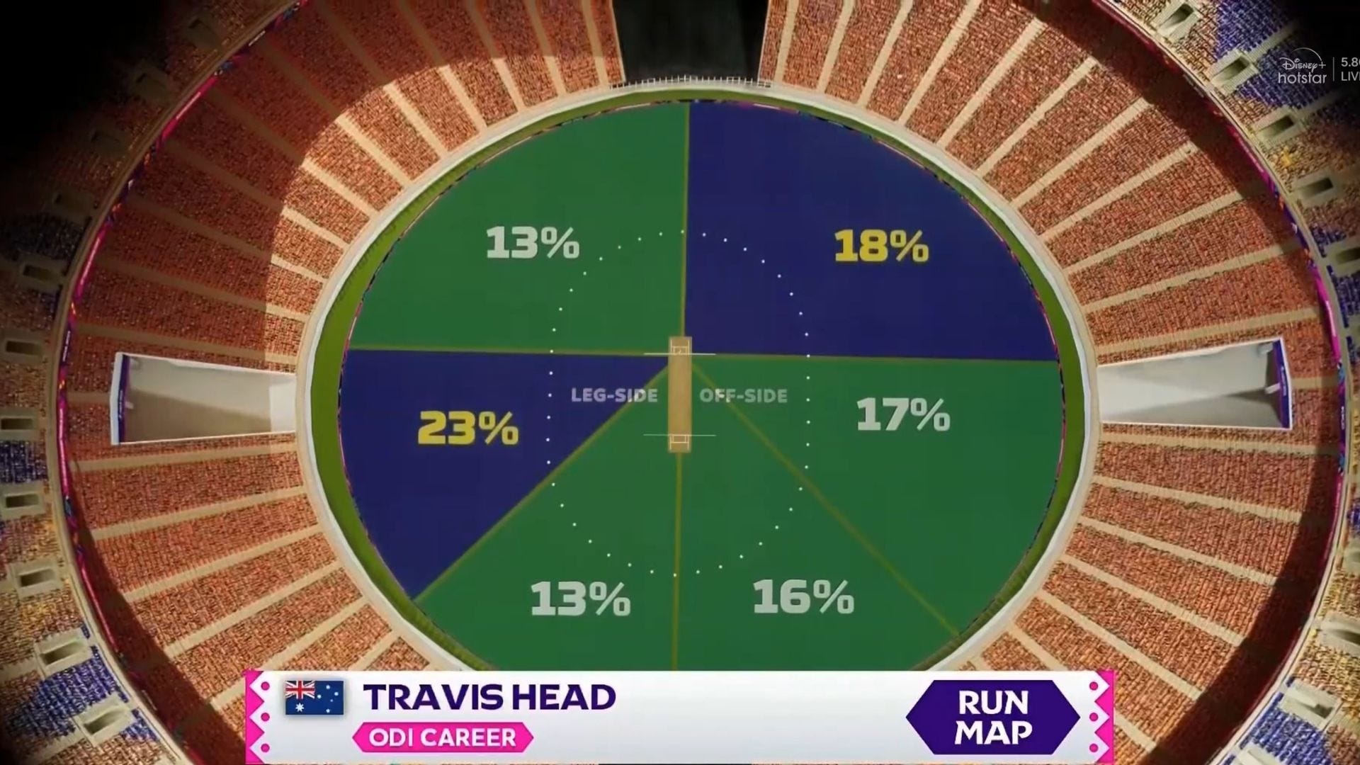 So Travis Head essentially has two major scoring options when you look at his ODI career. Looking back at my early notes, I thought of that as a bit of a negative. He can play a cut, I mean he can slice the ball off the open face of the bat. Some of the deliveries where he was almost bowled by Shami and Bumrah is when he was doing that. Getting himself into a position where he was staying very leg side of the ball and trying to get it away.