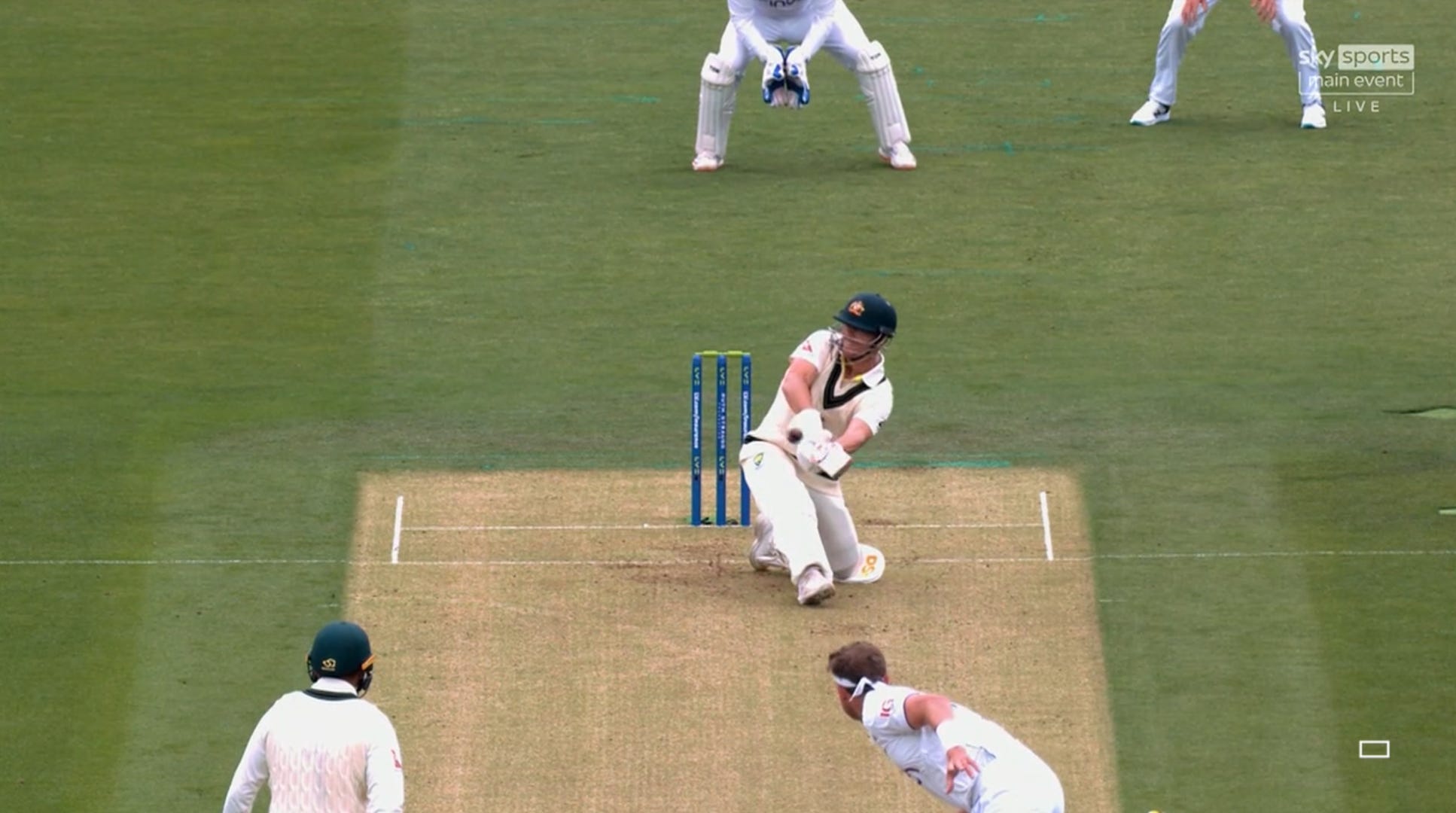 When facing his arch-nemesis. David Warner got down on one knee to sweep Stuart Broad from outside off stump. He did the same against Ollie Robinson later on as well.