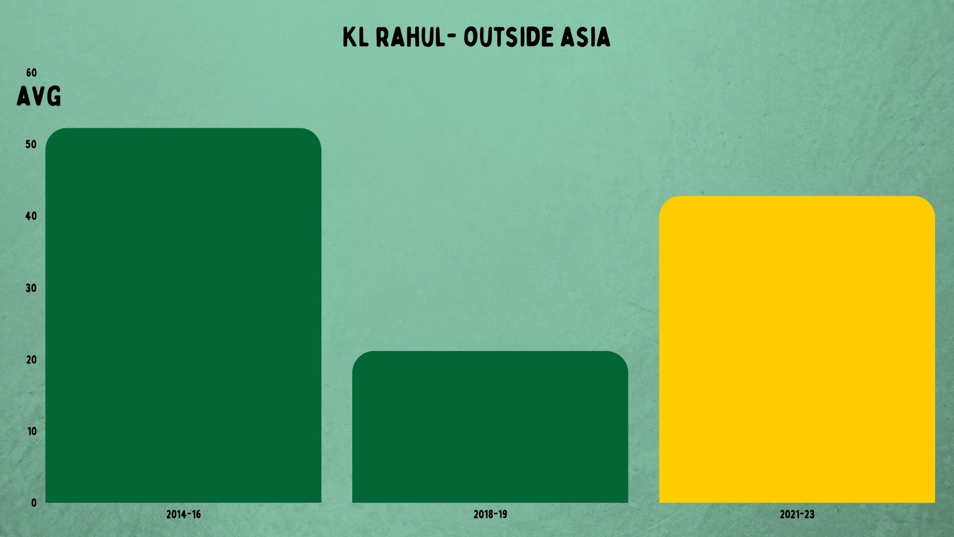 This is his average outside Asia in different phases of his career. He started off well with those hundreds in SCG and Kingston. He struggled a fair bit in 2018-19, which was probably the peak wobble ball era. And since his comeback to the Test side against England in August 2021, he’s actually been doing pretty well in the last 3 years. The ultimate utility player for India.