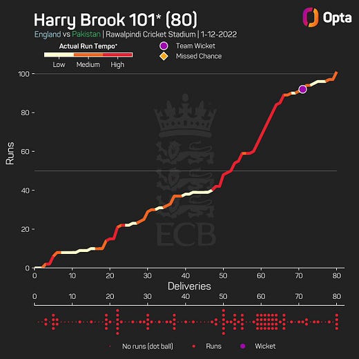 And most of them are near each other in terms of runs per over. After the 1950s, Test batting rates never really changed that much. Occasionally someone would bat faster in an innings, but even as the bats got bigger, and the batters got stronger, things did not change that much. And then you have this last innings by England -which is in any and every way a complete outlier in the history of cricket.