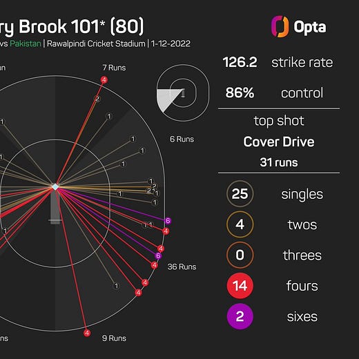 He kinda kept hitting his boundaries at two parts of the ground. I feel like on a day like this, just having someone on that boundary all the time is ok. Ofcourse a few of these were off a low-use part-timer who might have already bowled his last over in Test cricket.