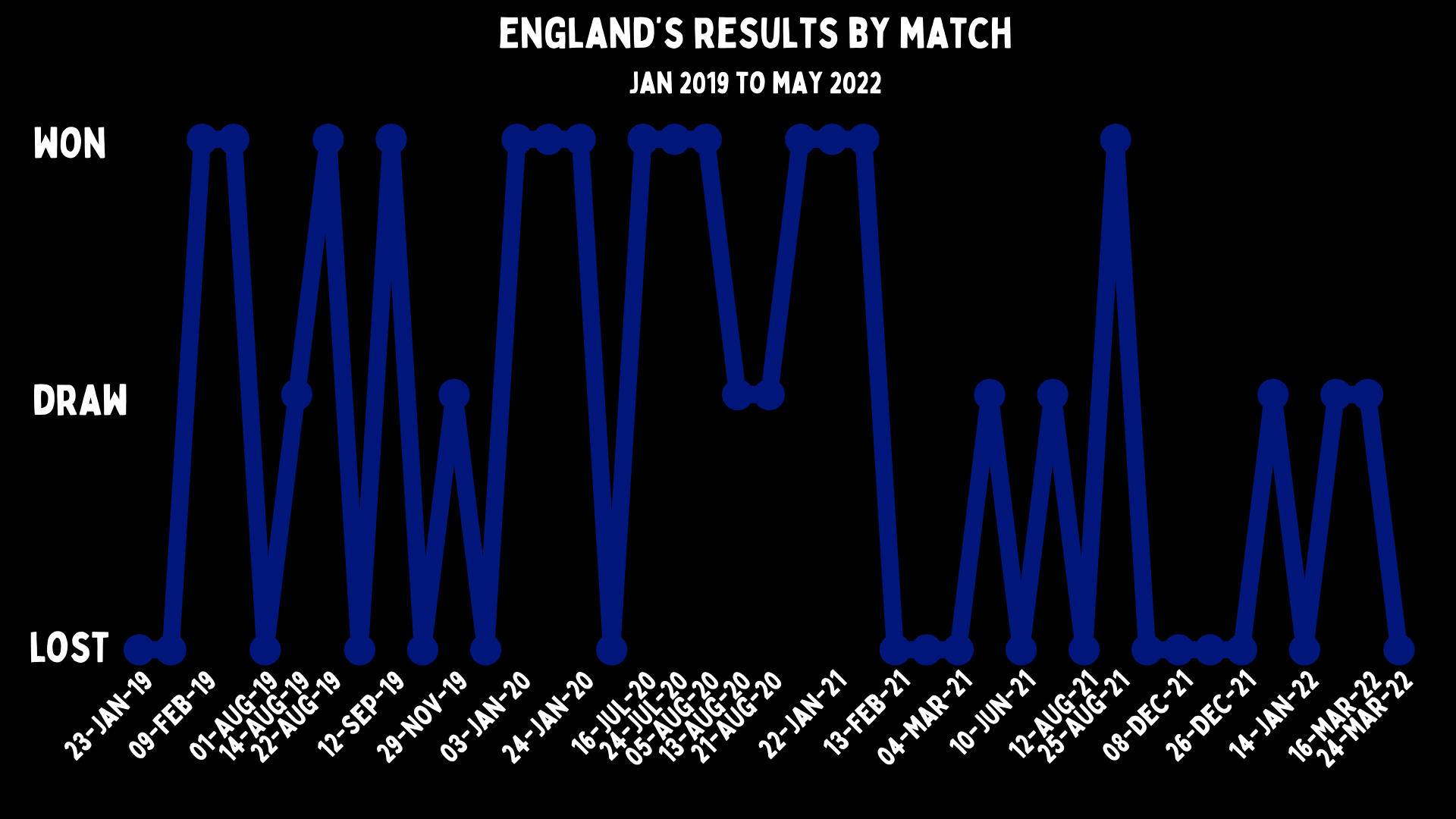 Around the start of 2021, they won three straight matches in Asia (two in Sri Lanka and one in Chennai). From their following 17 Tests, they didn’t win 16 of them. They played Australia and India away, tough crowd. But they also played India and New Zealand at home, and the West Indies away.