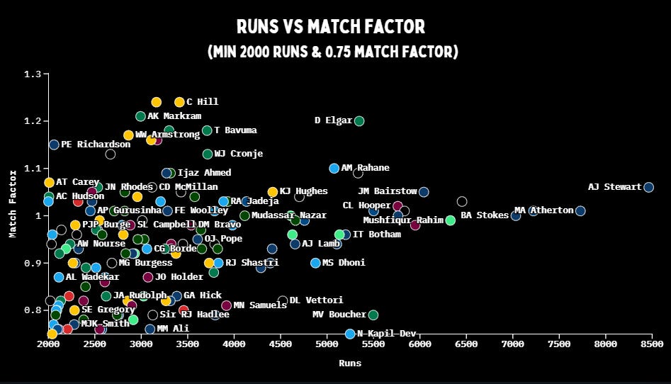 But the overall match factor is often influenced by the strength of your bowling attack. It’s part of the reason why we see these South African batters with great numbers.