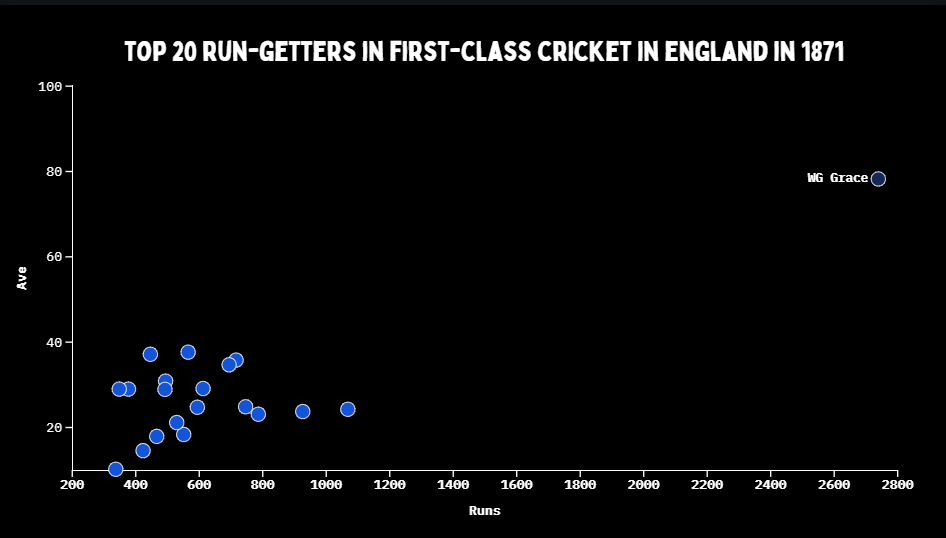 In the summer of 1871, William Gilbert Grace scored 10 tons. The player with the second-most runs that season averaged less than a third. All the other batters made seven hundreds in total, and nobody made two.