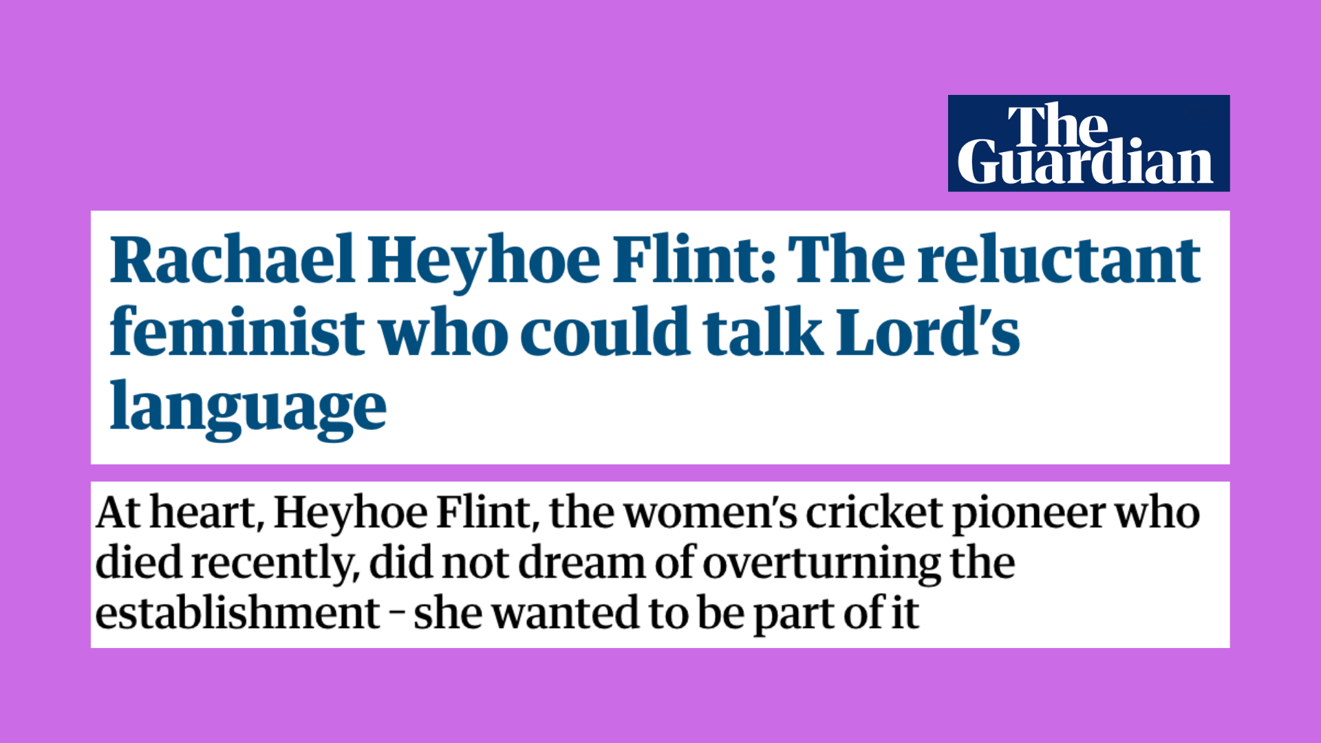 So, while women’s cricket was dying, it had in Heyhoe-Flint a voice, an activist, a journalist, and a star.