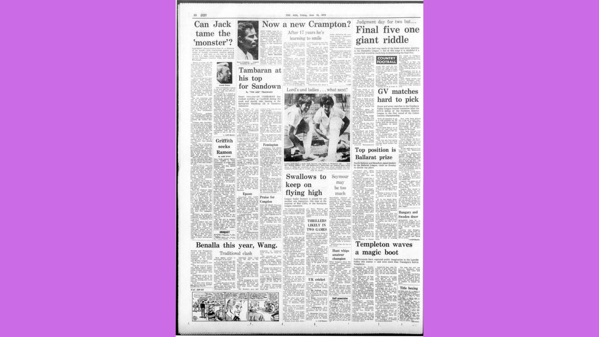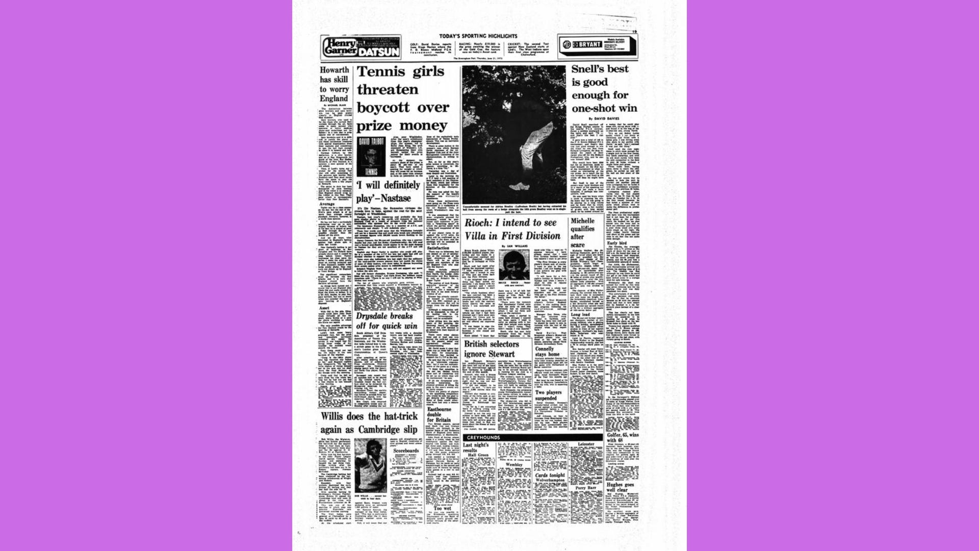 Some of her journalism was bizarre, but this was a weird time in sport. Let alone for feminism.