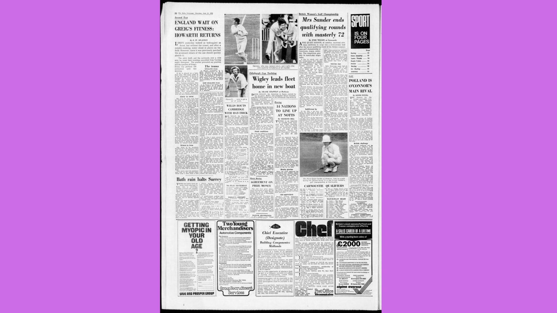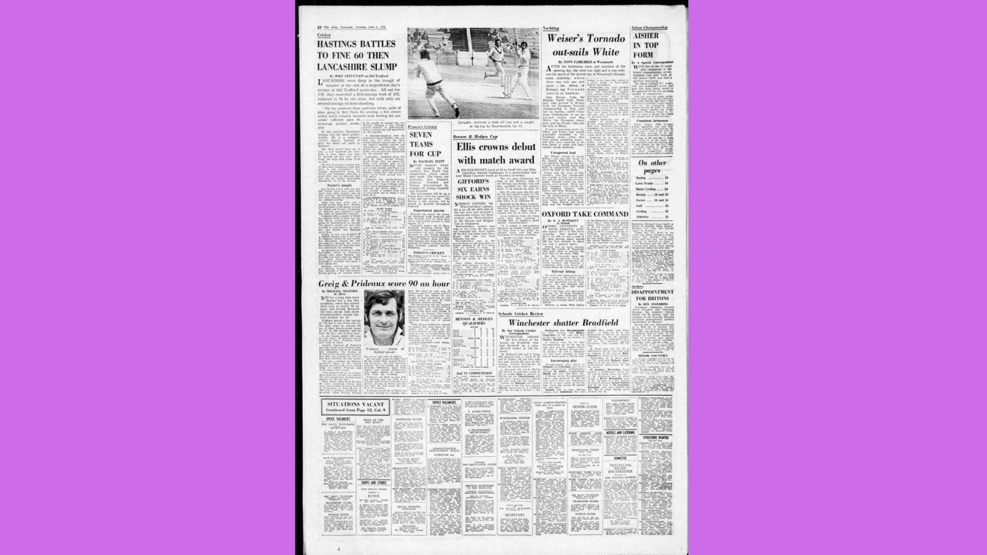That’s how much column space The Daily Telegraph gave the first-ever cricket World Cup match.