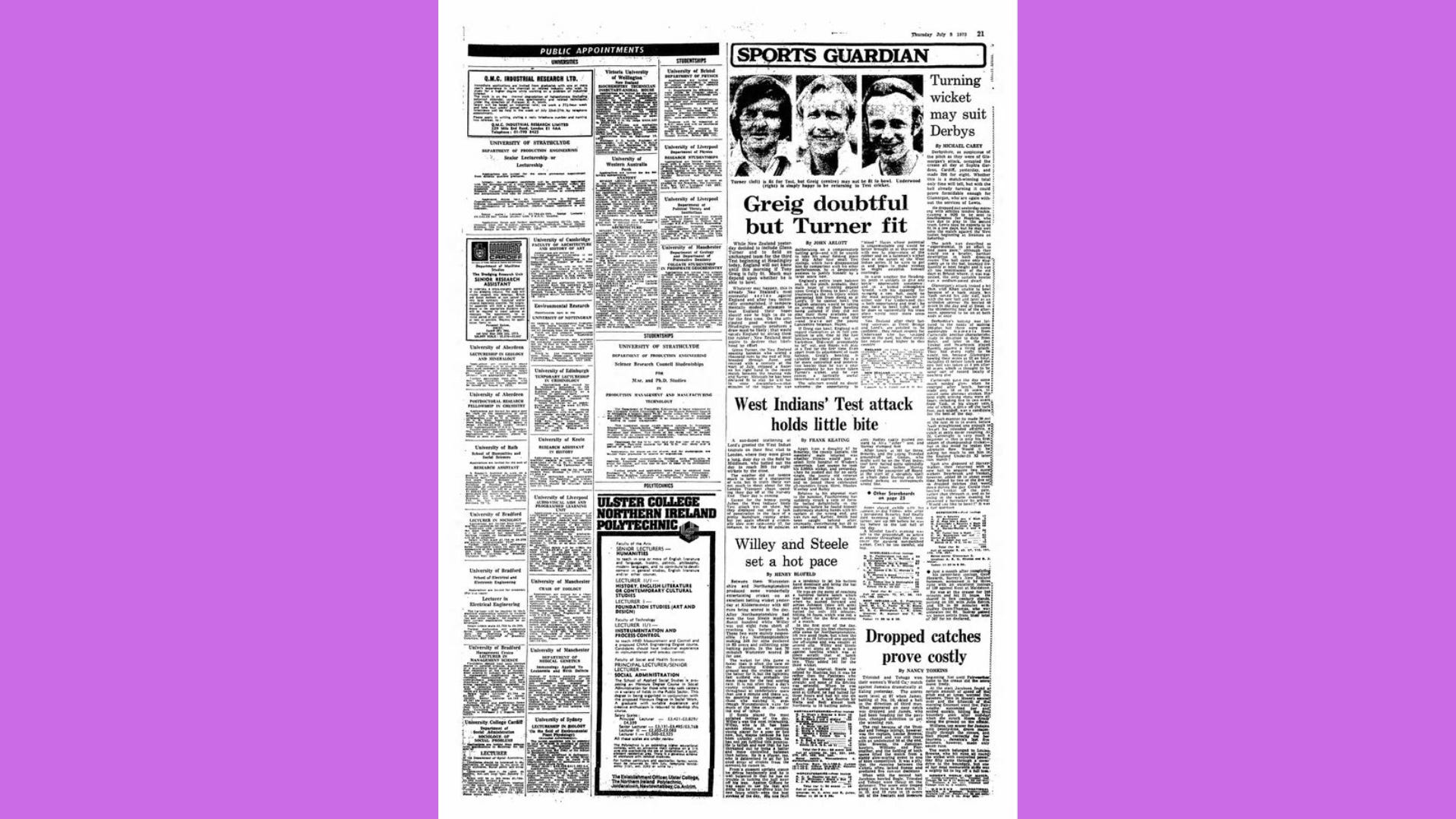 More than 40 years later, a 1969 UK Sports Council report declared women’s cricket was “dying.” There were good reasons for this: the matches were falling off, money wasn’t coming in, and when they played, the crowds were almost non-existent. There is an adage that you should never fight with someone who buys ink by the barrel. Women’s cricket barely got a thimble’s worth. Entire matches given an inch or less of column space.