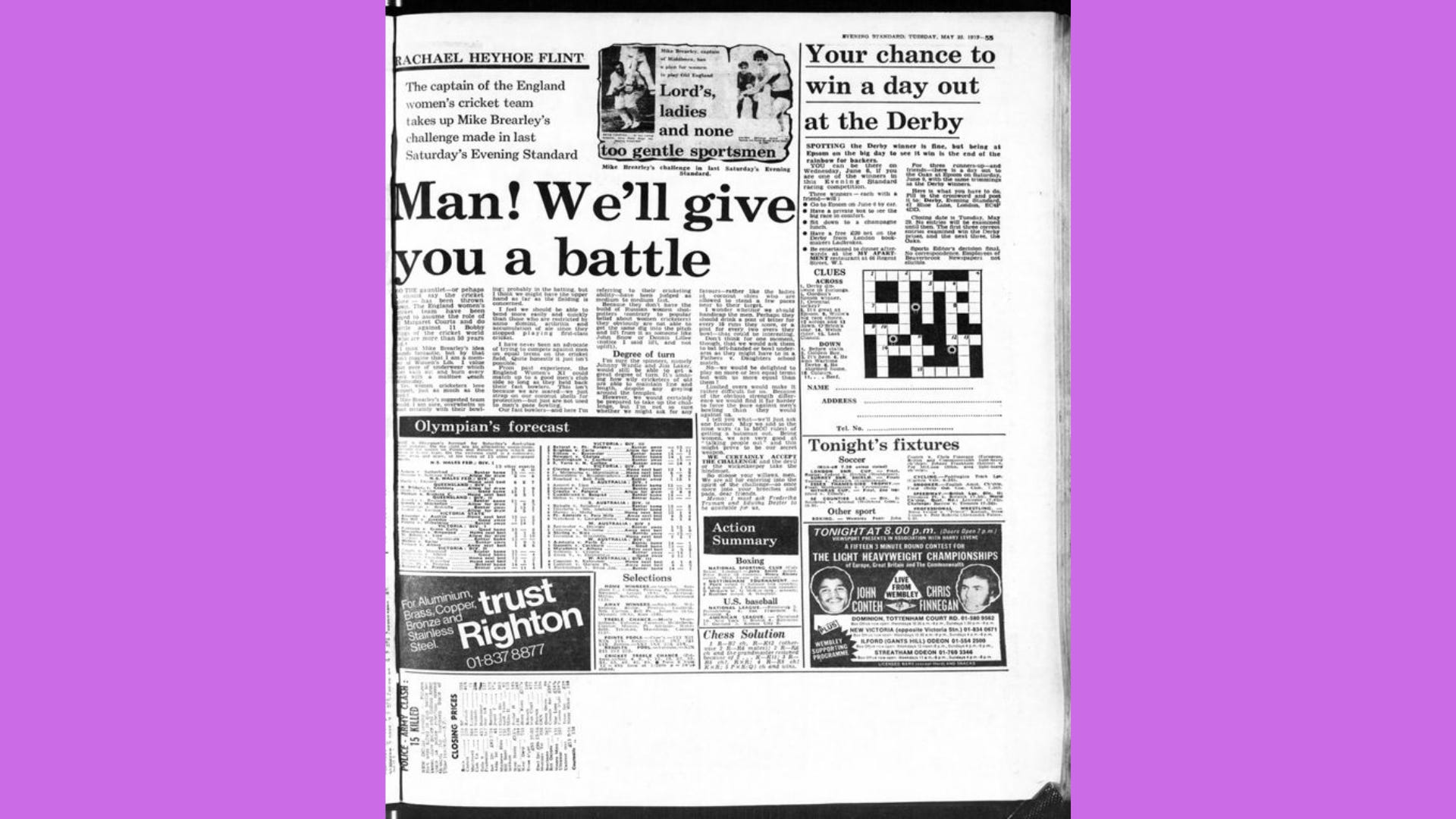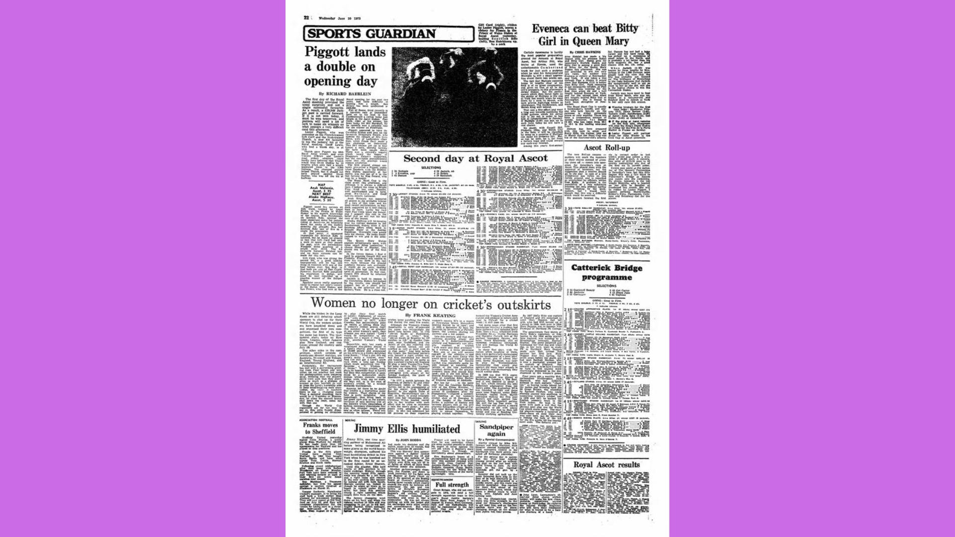 Women’s Lib was the term used in many articles about the World Cup, but Heyhoe-Flint was not a bra-burning feminist. And I don’t mention that randomly, she actually wrote that in her Evening Standard piece. At every point, she made it clear she was not about a progressive on any topic, she just wanted women’s cricket to grow.