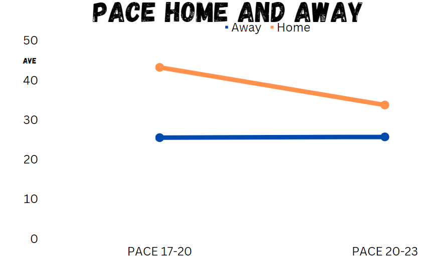 This is just pace. Home and away, in our periods. Ok, so this is pretty clear. Away has had no change. They were struggling in the pace pandemic like everyone else when not at home. But you can see that the average against pace at home has cratered.
