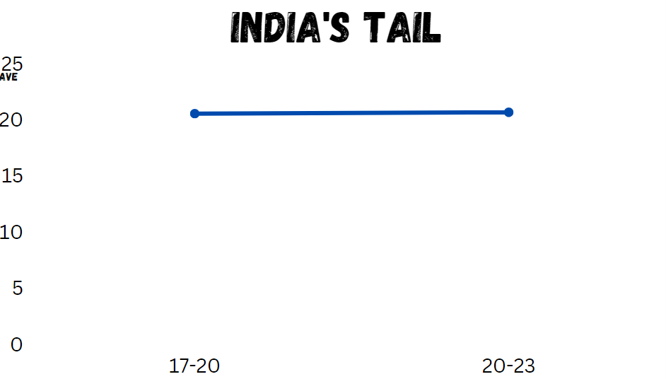At the moment, you're probably trying to work out what stopped India's runs, and two theories. But for that, I have to show you two things. India's tail has stayed the exact same over the last three years and the three before. It's almost spooky how similar they are.