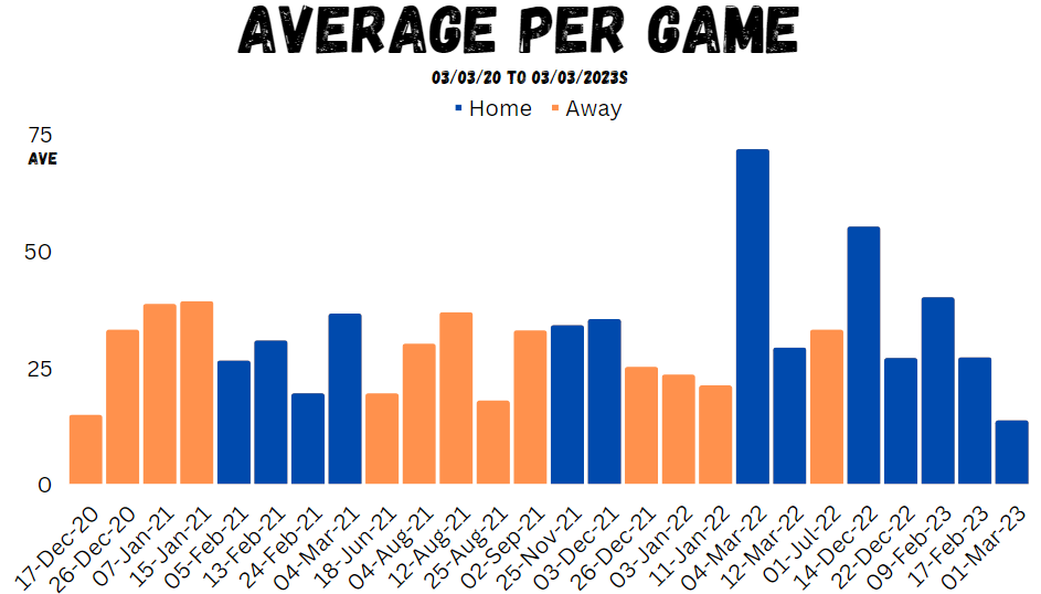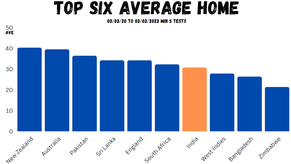 The average per game actually shows that they are probably batting slightly better at home. But perhaps they get fewer second innings to cash in on as the other team hasn't made enough runs. But this also shows that they regularly don't make runs at home either. They have only four innings averaging over 35 runs per wicket in a game. That is not normal for a home team. Certainly not for India.