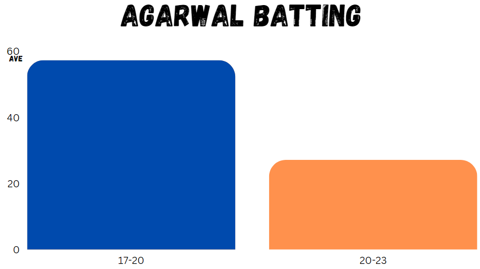 Mayank Agarwal was the only player here who doesn't average 50 at the first-class level. Though he's at 47. This is noteworthy as he was averaging 64 after 10 Tests. He was due a regression to the mean after that no matter what. He made 118 runs in his next five games. He actually held pretty form after that one dip, but the damage was done. He was another player who should have been in his prime and couldn't find a run.