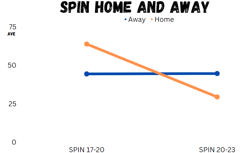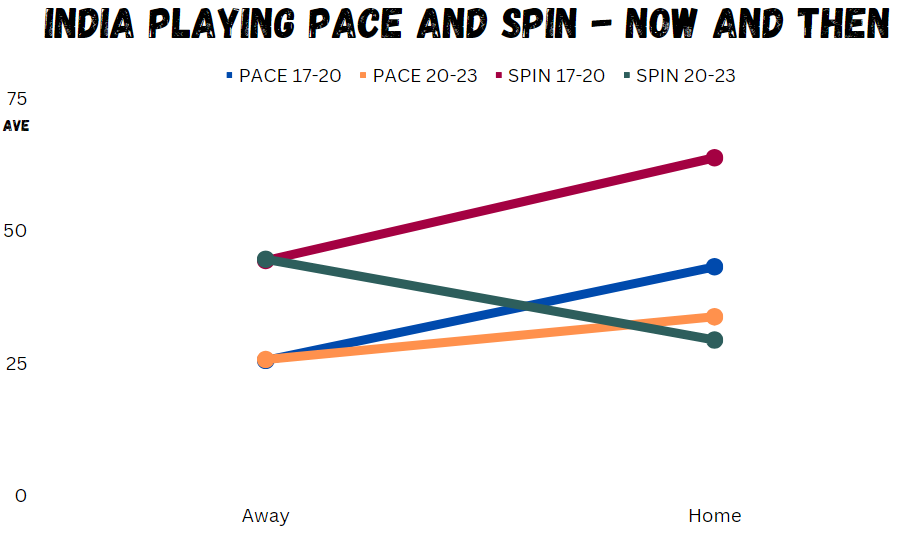 And it is not spin away because again, they are doing pretty similar against spin when they travel. But they have lost half of their runs at home, more than. They were averaging over 60 against spin at home, and now it's less than 30.