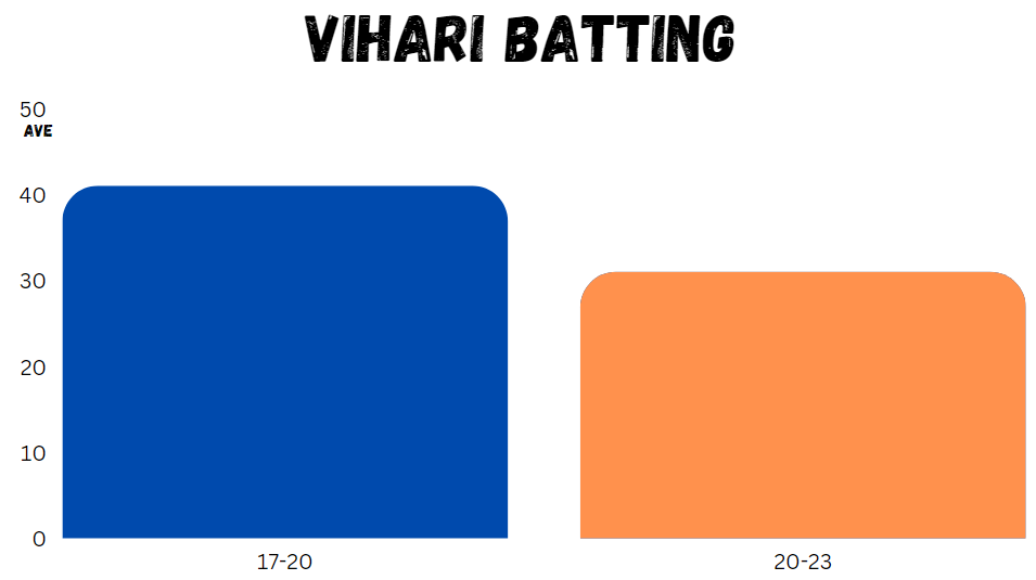 Hanuma Vihari was building a really nice career in the period before. Since he's not made many runs and is now seemingly out of favour at the age of 29. Hard to see him coming back now, yet he averages 57 in first class outside of Tests.