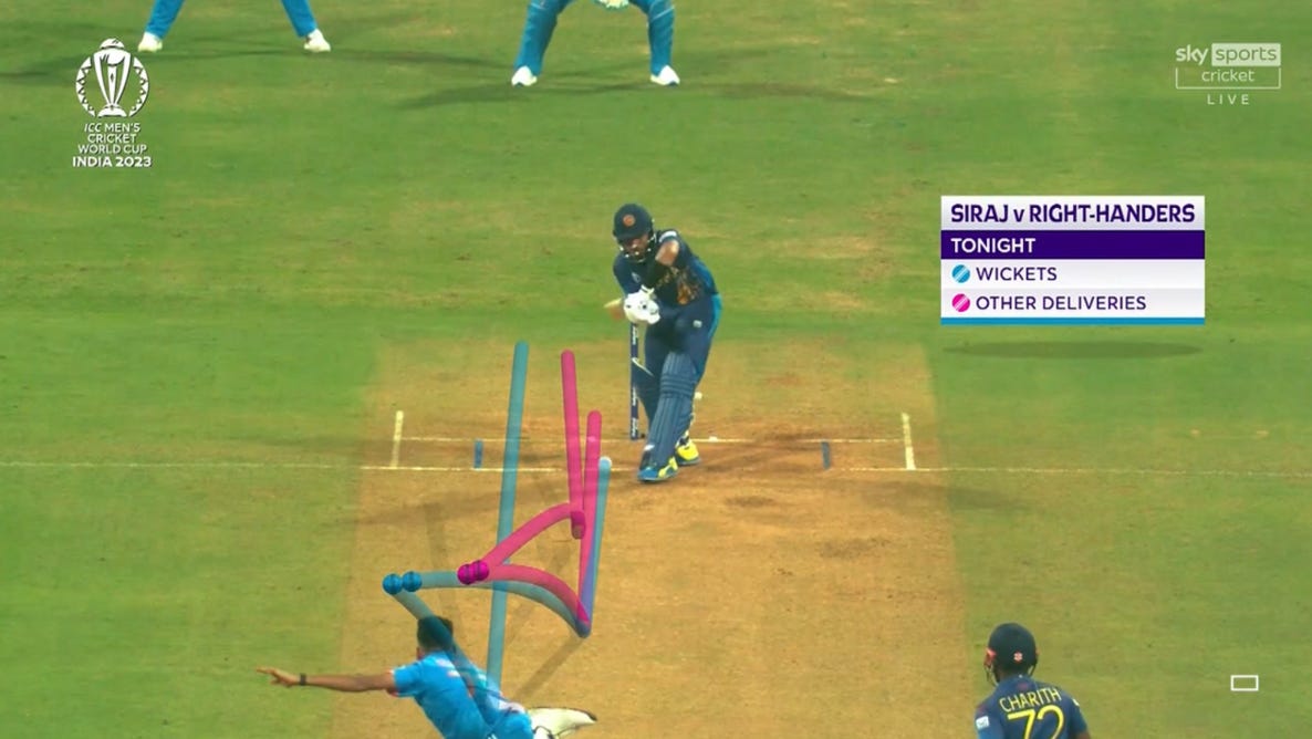This actually looks like a poor shot from Sadeera Samarawickrama, and considering the match situation, it is not ideal. But there is even more going on here than it looks. One thing is what Siraj is doing on the crease was moving around. So if Samarawickrama saw this ball, he might have thought it was close to his body, but because of where he clever from, it was wider. This is their worst wicket, and it has genius behind it.