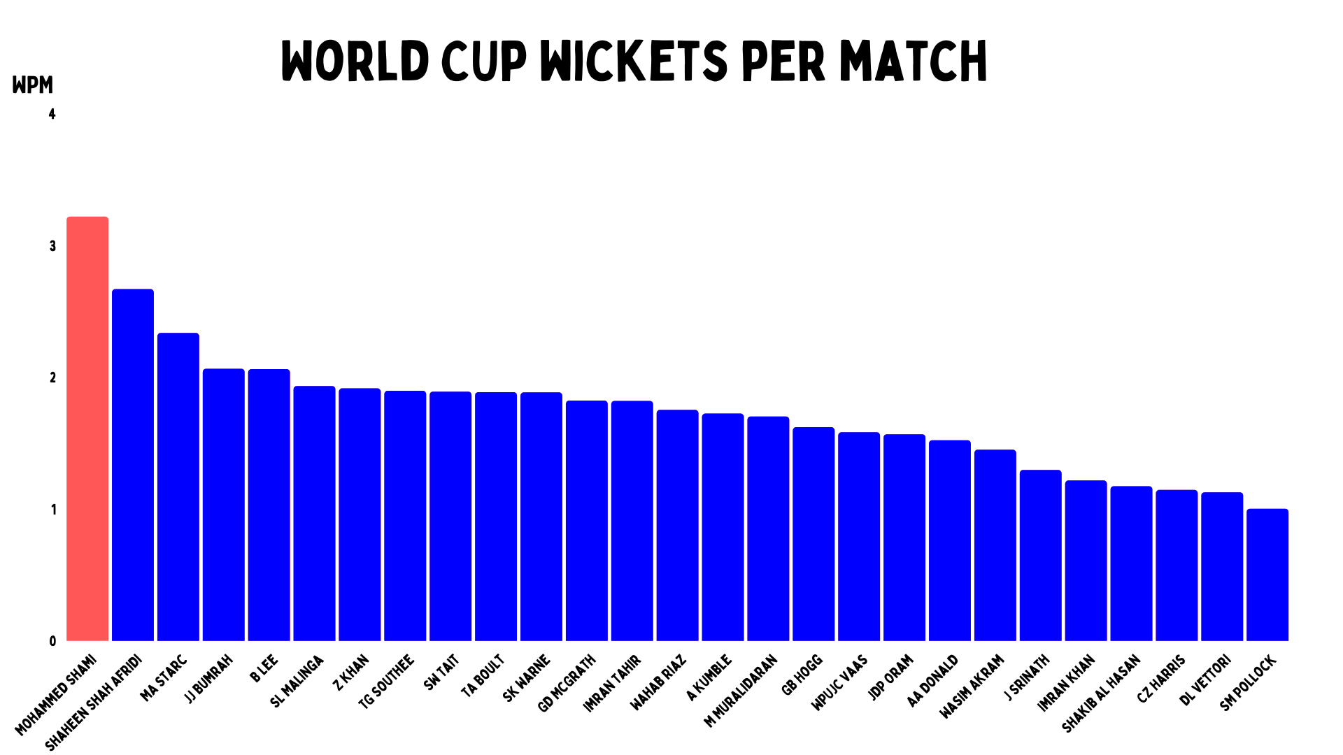 Shami has actually gone further ahead on this list. He started as the player with the most wickets per match at the World Cup, and this game meant he now averages three victims in each game in the biggest tournament.
