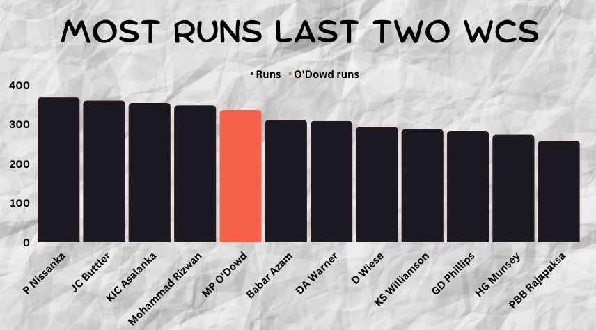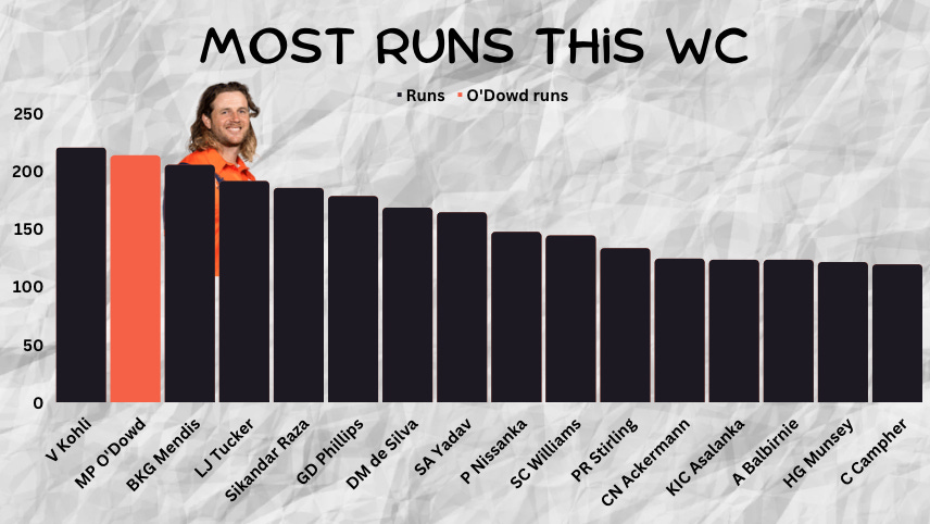 You know there was going to be coming on Max O'Dowd. Because he made a 50 today, and the Netherlands won. Over two World Cups they have made five 50s; he has four of them. He was the leading run-scorer in the tournament today, until Virat Kohli went past him.