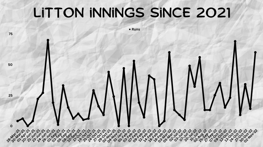 And just for fun, let us remember that in Bangladesh's 13th opening partnership in the last two years, at one stage Shanto had four runs, and LItton had 56.