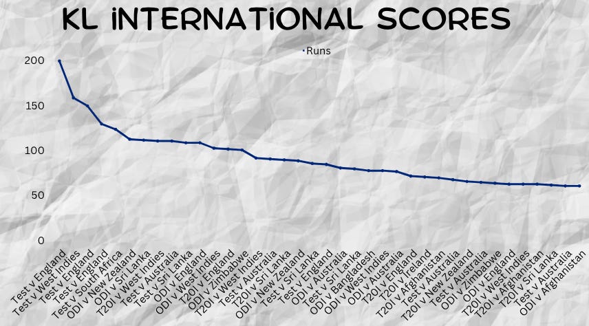 The other day I looked up KL Rahul's entire international career. Because I'd heard so much about him not making runs under pressure at the top level. And I figured if that was true, it would be pronounced in his record.