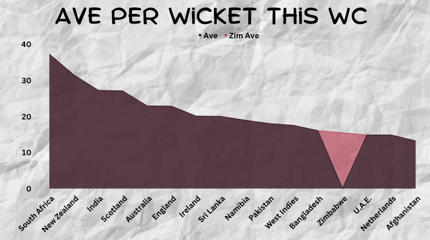When your best batter is a 36 year old number five, this is not ideal. This is a bowling tournament, but Zimbabwe have not been good with the bat. Before the tournament I thought they would struggle to make over 150 at this level. They managed it first game, but since then even in their wins, their batting has been pretty rough.