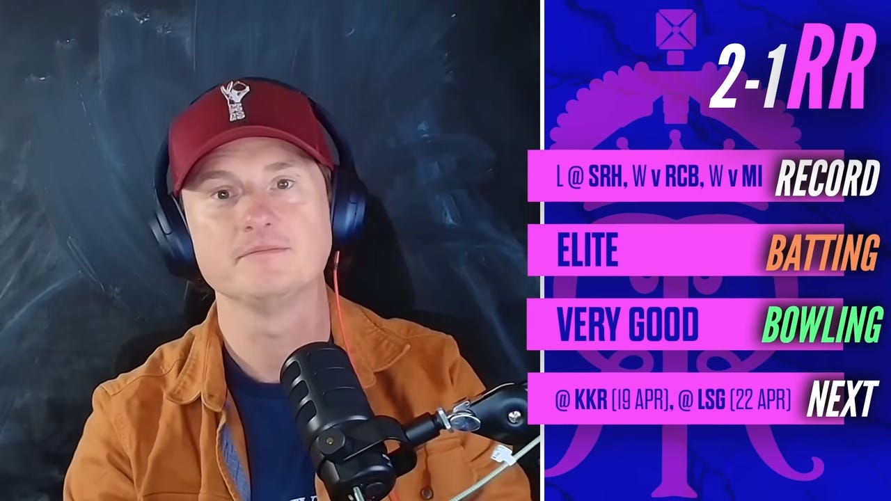 Next: @ KKR (Apr 19, afternoon game), @ LSG (Apr 22)