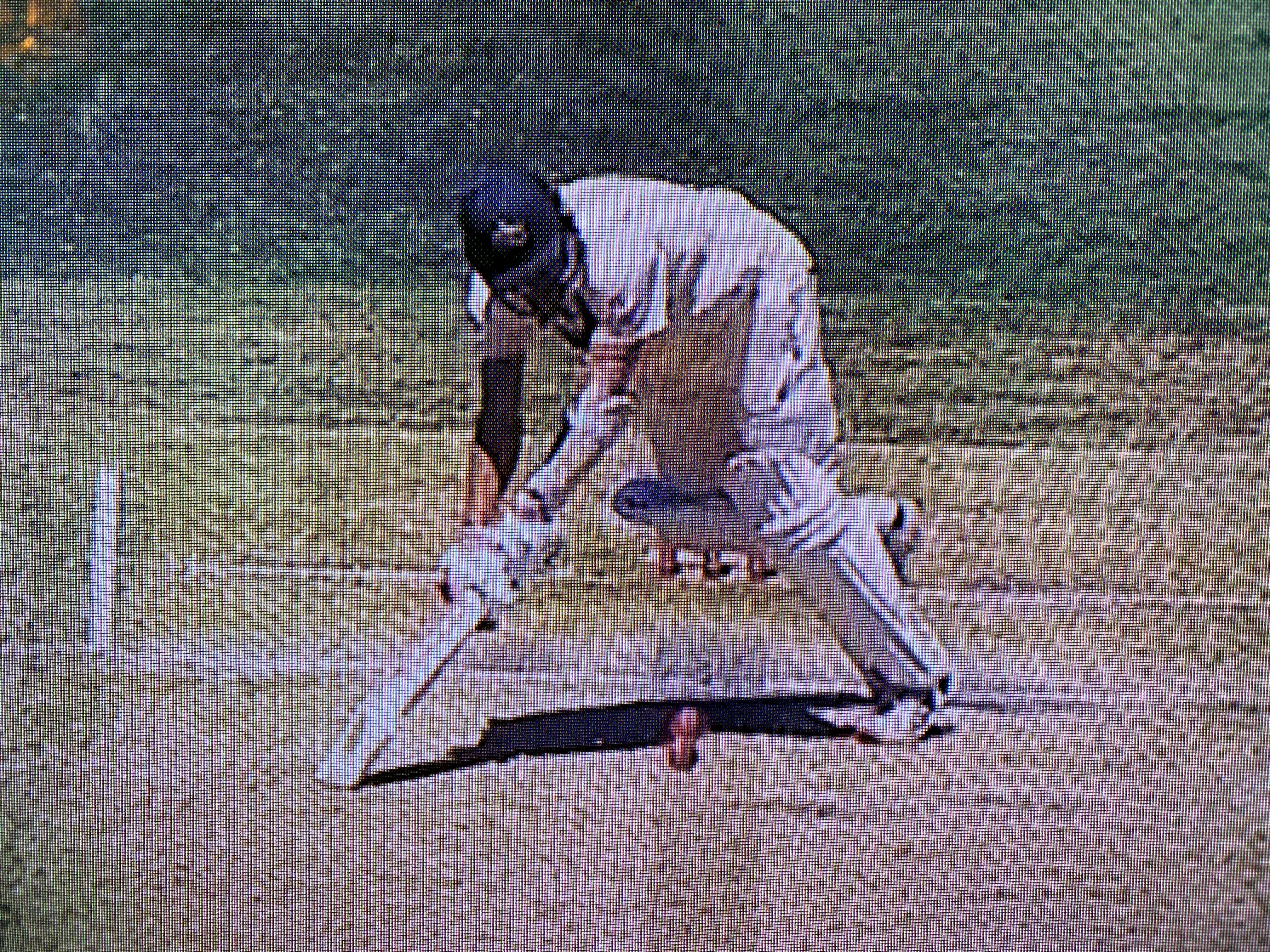 But, not only does that happen, he adds another layer to it by missing his arm with the bat. His hand-eye coordination is so shook that he can't actually make a 'T' sign. And by the time he makes it correctly, he's certainly well beyond his 15-second limit to use the review.