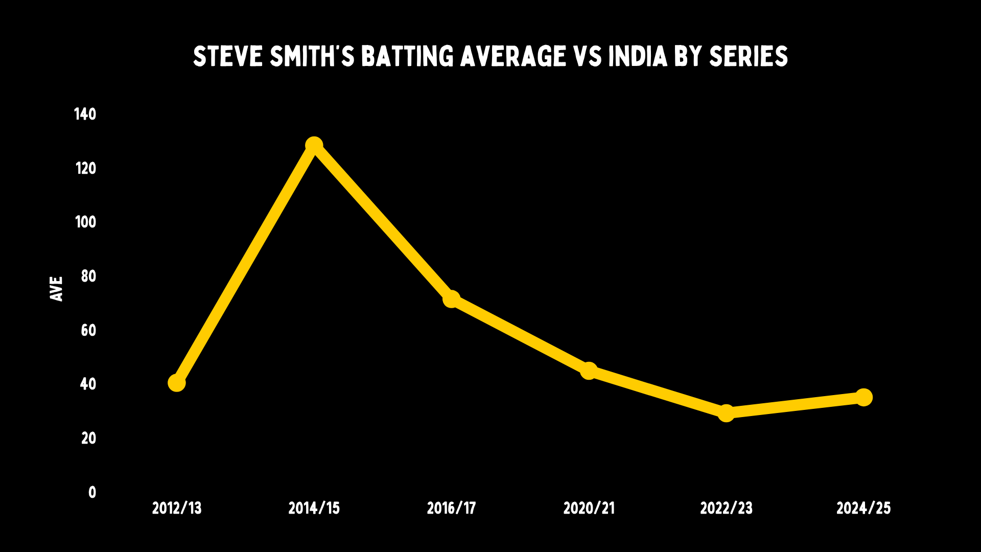 Looking at the averages by each individual series, the first time it drops below 30 is in the 2022/23 season in India. The final Test at Ahmedabad was a runfest, and he couldn’t cash in. Even in the most recent Border-Gavaskar Trophy, his average wasn't particularly flattering, but his two tons certainly were. It showed he’s still not lost it, and he finished as the third-highest run-getter of the series, only behind Head and Yashasvi Jaiswal.