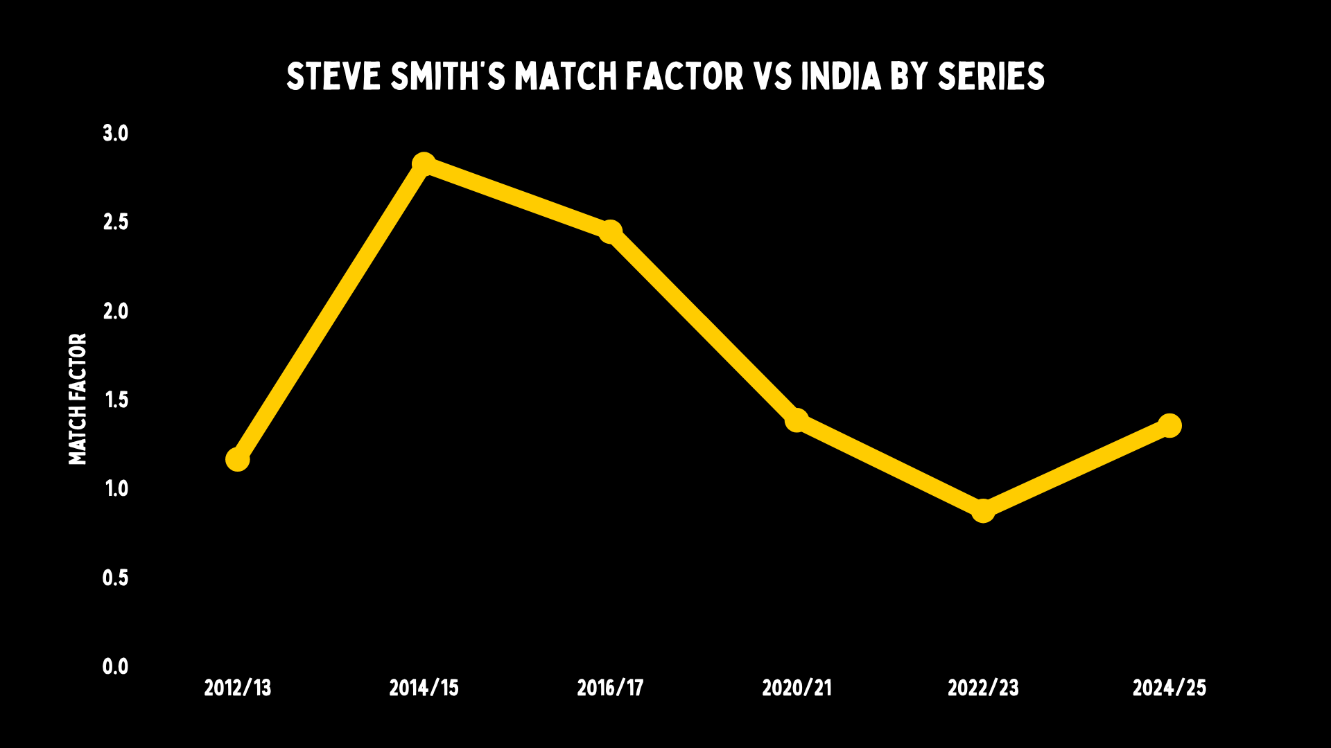 This means Smith has two all-time great series, home and away. Contextually, he was pretty good in the others too, apart from the last India tour.