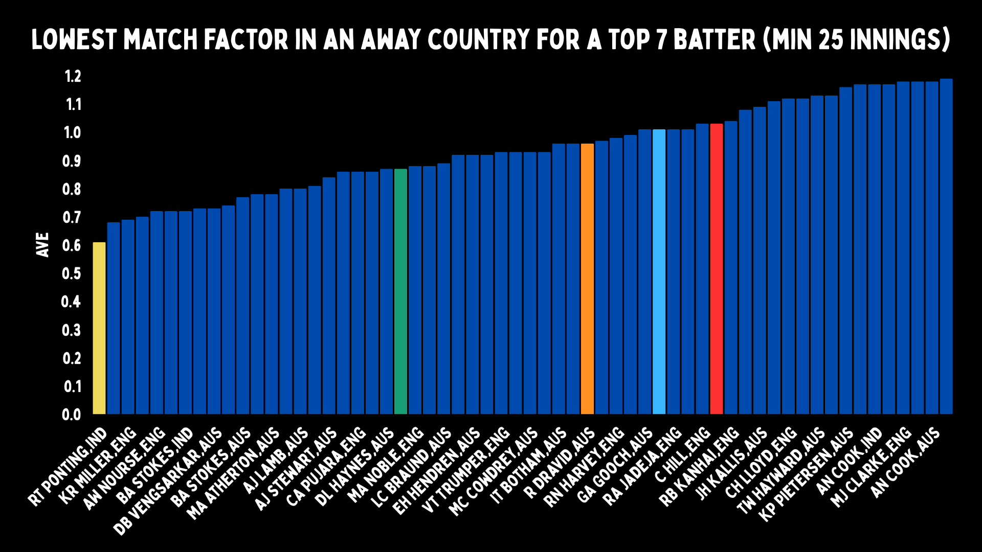 Despite a higher average, Dravid’s match factor there is worse than Root’s. The England star averages 3% better than the mean in his games, while Dravid is 4% worse.