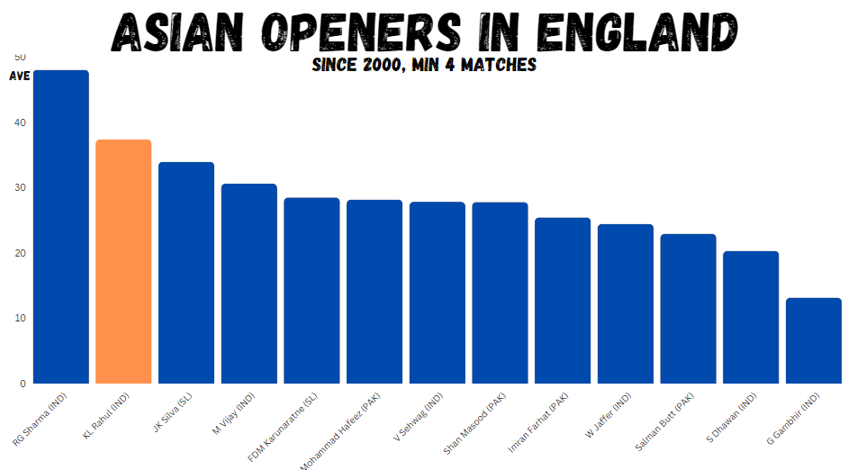 But now you have seen him at his worst, let me show you him at his best. Of all the high-usage Asian openers in the UK since 2000, he has the second-best average. Asian openers have not had a good time in England, and, he has.
