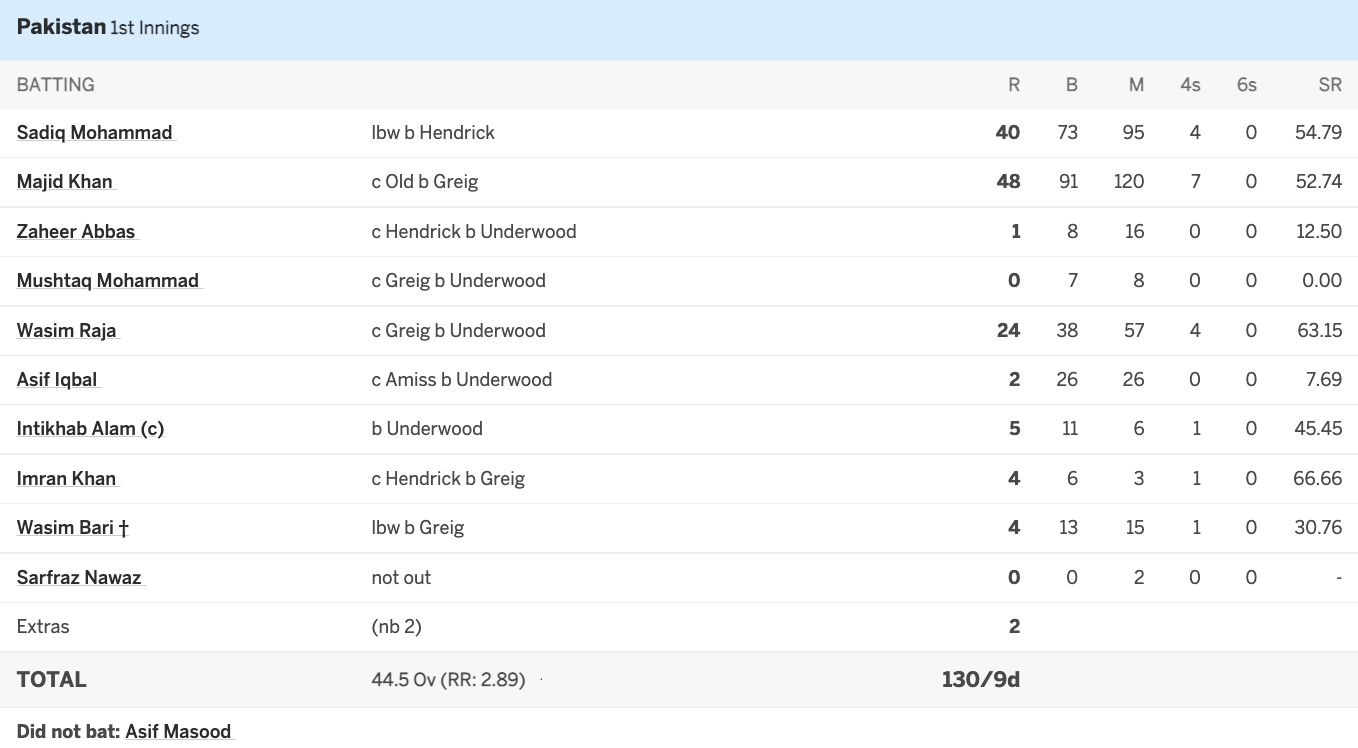 The only time we’ve had a declaration earlier is when Pakistan went to Lord’s in ‘74. They declared their first innings on day one because of rain. Meaning Asif Mahmood didn’t get a bat.