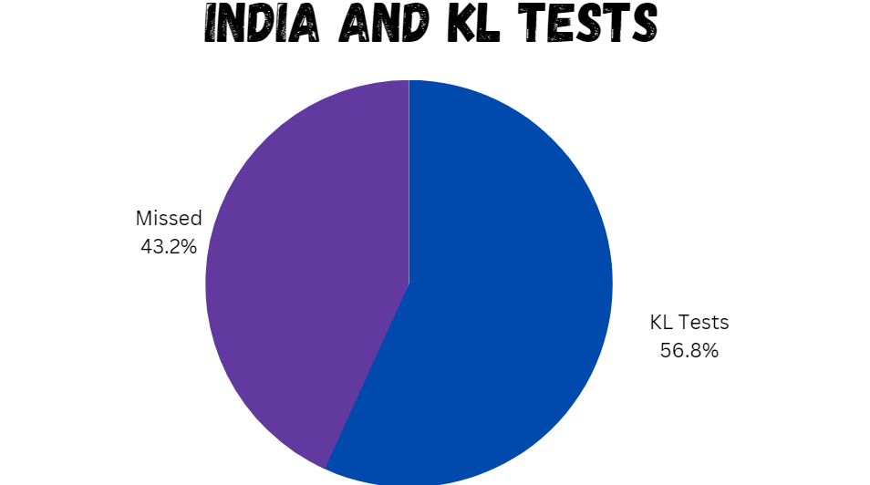 But let’s just focus on the fact that Rahul is struggling with the bat, and not look at why. One phrase Prasad uses is “consistently inconsistent” when talking about Rahul’s form. But the first thing I wanted to check is how often he actually played. It is hard to get into the groove if you barely play. And he’s just over 50% of the Tests in that time. It’s not ideal.
