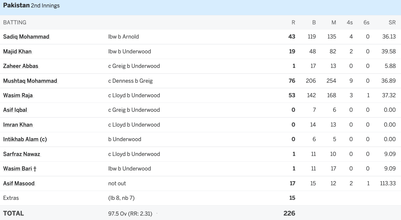 The match was still a draw. But weirdly in the second innings Pakistan scrapped their way over 200, but that included a huge collapse at the end.