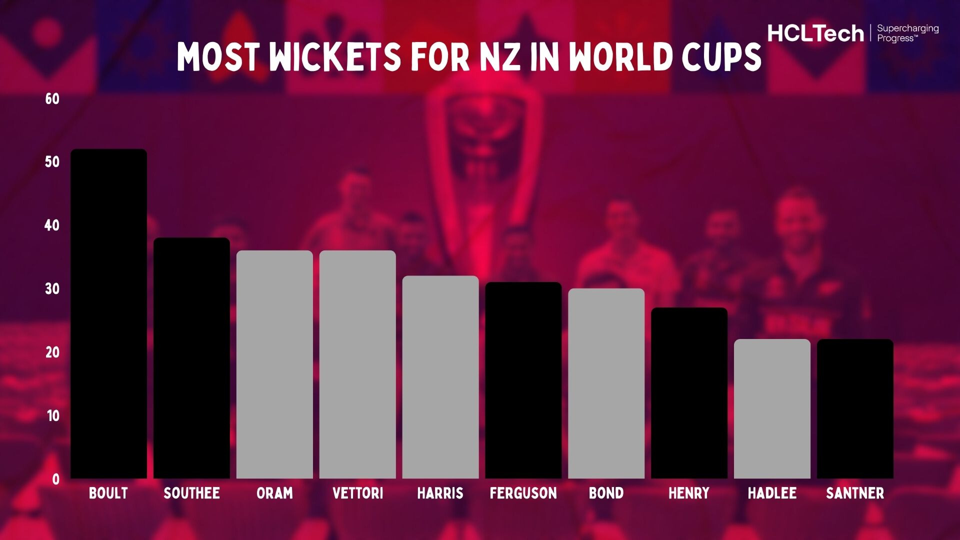 He is the first New Zealand bowler to take 50 wickets in World Cups, and the 6th overall. I talked about him and Starc being all-time greats, and how they needed another great World Cup to seal that status. I think he has been pretty decent in this tournament, especially with the knuckleball. You’ve got Boult, Southee, Ferguson, Henry and Santner in the top 10 - a golden age of New Zealand bowling.