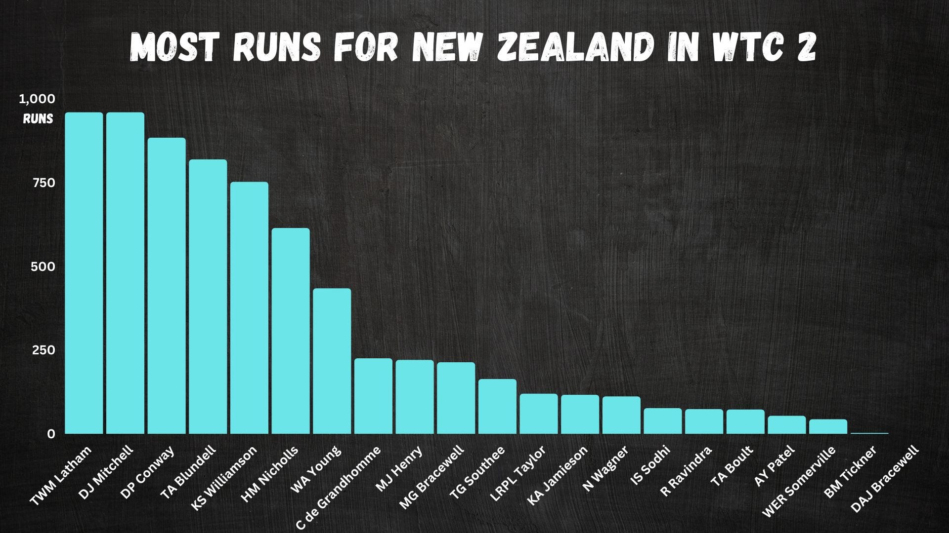 BJ Watling averaged under 28 in their successful campaign. Compare that to Tom Blundell, who averages 43 in this cycle. While Watling and Taylor have been great servants of New Zealand cricket, neither was a star in that first World Test championship.