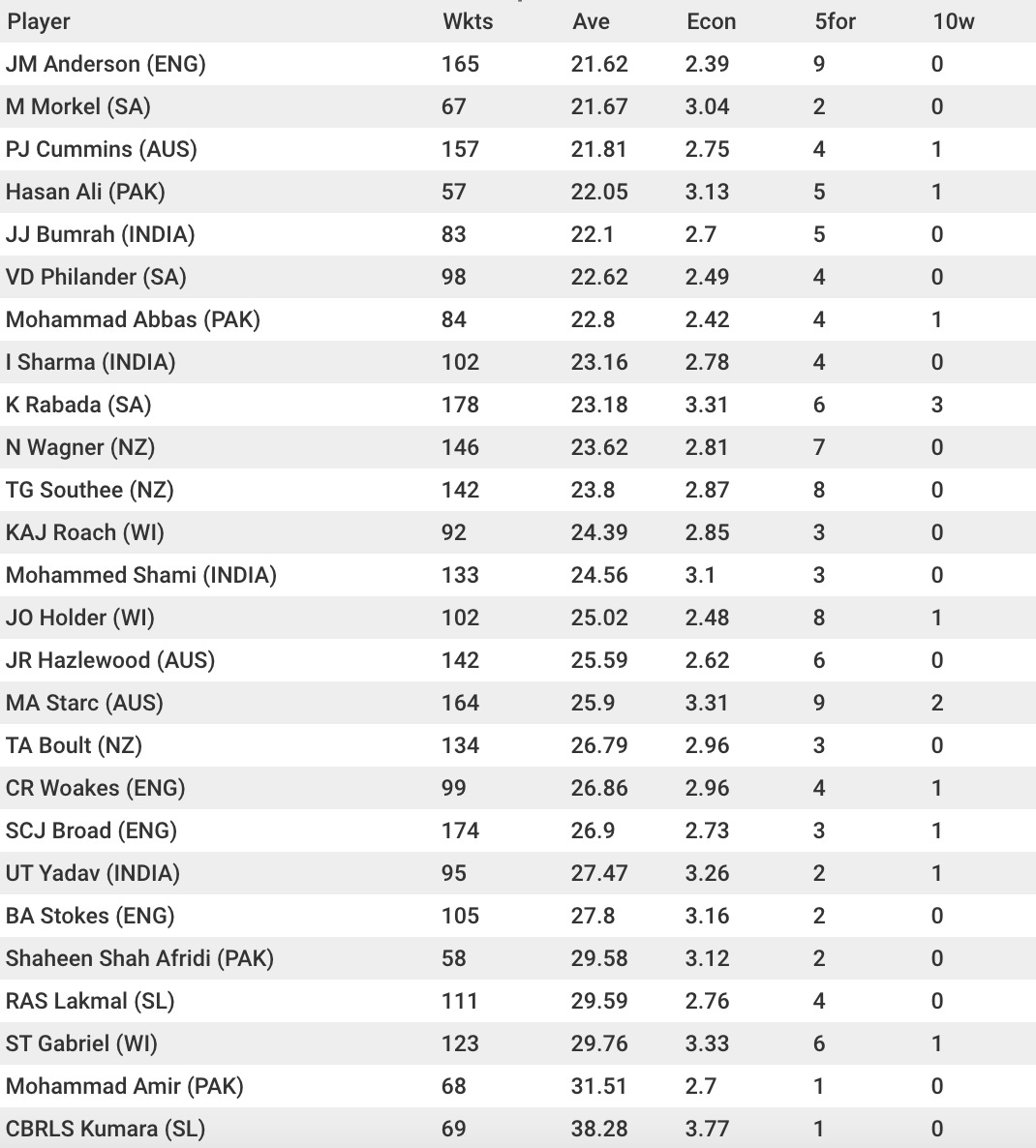 But a lot has been going on with Test quick bowling in that time. Jimmy Anderson has been incredible for so long he's making batting against him feel a bit silly. India did the entire Australia thing with a number of quicks. Australia has Pat Cummins. And these bigger nations suck the oxygen out of other conversations most of the time.