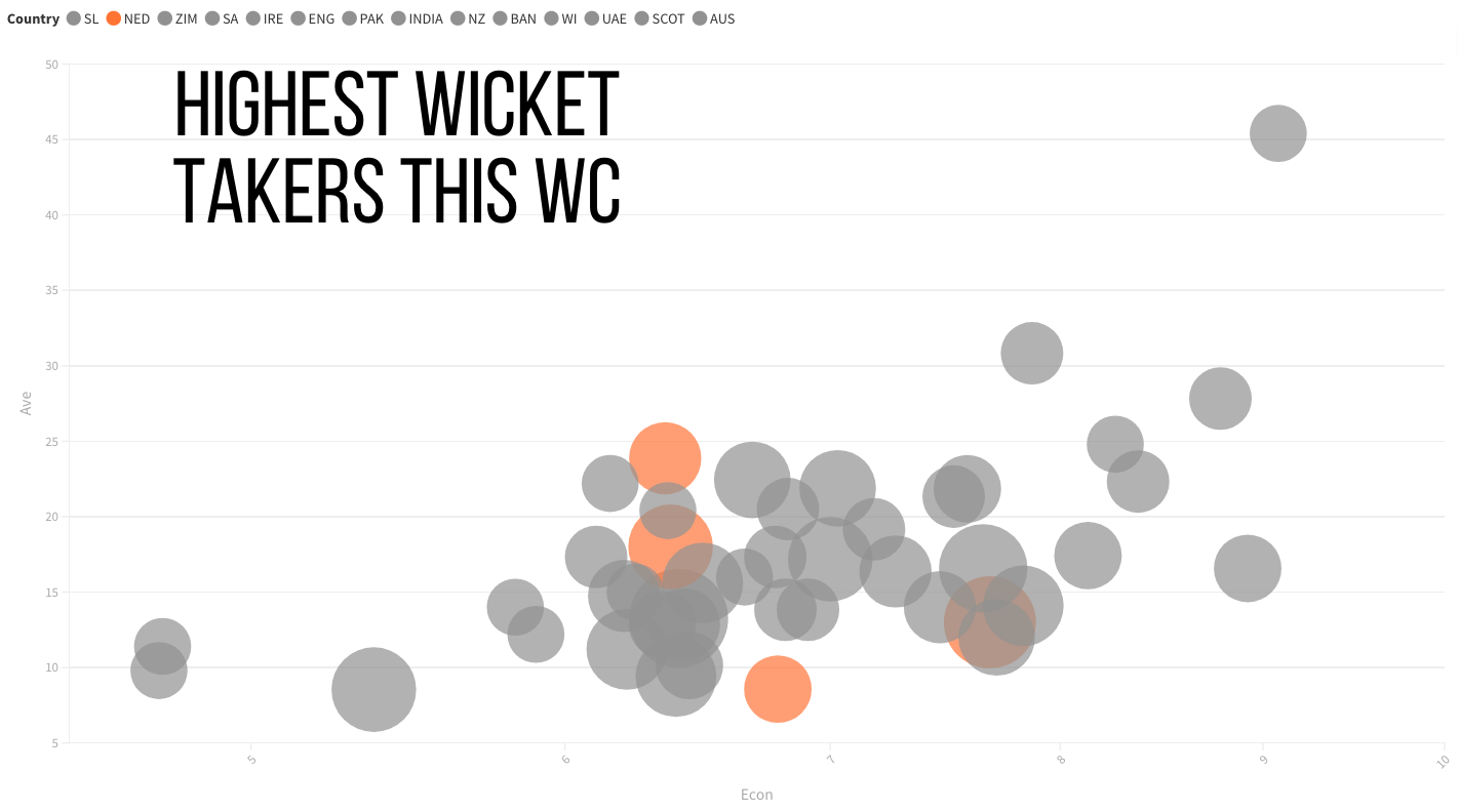 He exploded in the last over, finishing the innings off for the Netherlands brilliantly, smashing Parnell for two sixes as the Dutch took 15 from it to go past 150 for the first time in the competition. He finished with 41 from 26, 25% of all his runs in the tournament.