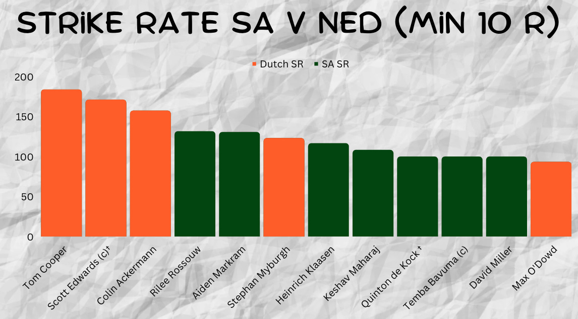 The tone was set in the powerplay, where Rabada and Ngidi were repeatedly taken down, conceding 37 from their three overs. By the end of six Netherlands were 48/0, their second best powerplay of the tournament, following the 51/0 they made against Namibia.