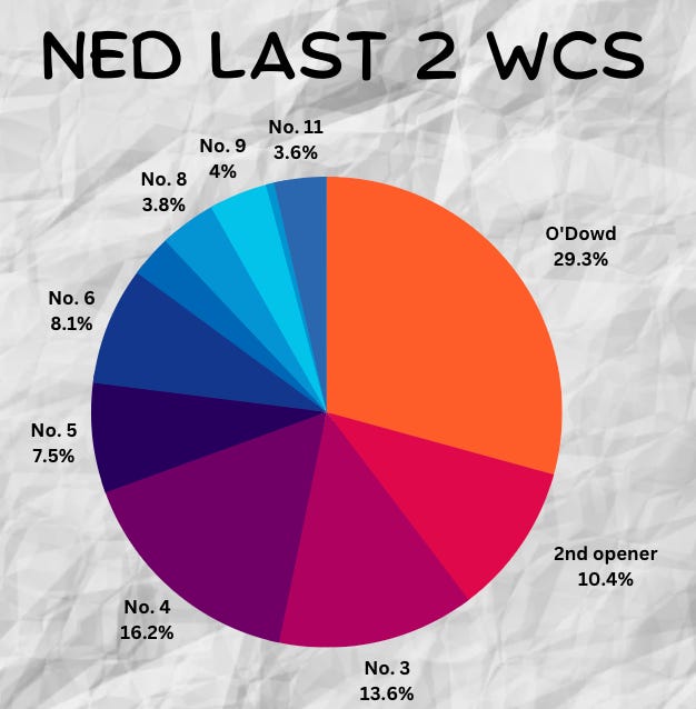 So far across both editions their number five position has not given them 100 runs in 11 games, while their number 11 has almost half as much. It has basically been O’Dowd, and no one.