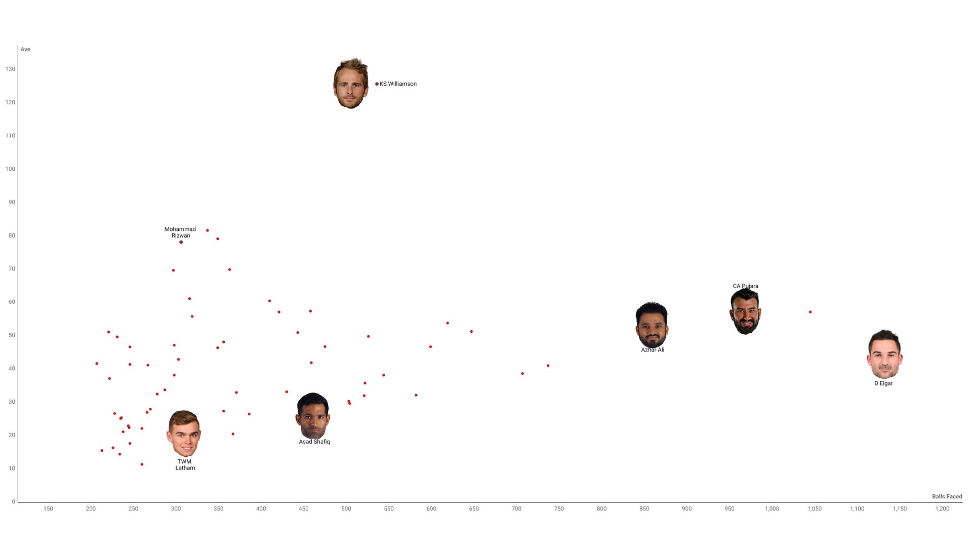 And mostly he just didn’t go out. 15 single figure outs in 65 innings - his not out record was strong, but mostly it was his ability to make runs every innings that really helped his batting. He batted like a great tail player and his consistency gave him a 50+ plus average for a decade.