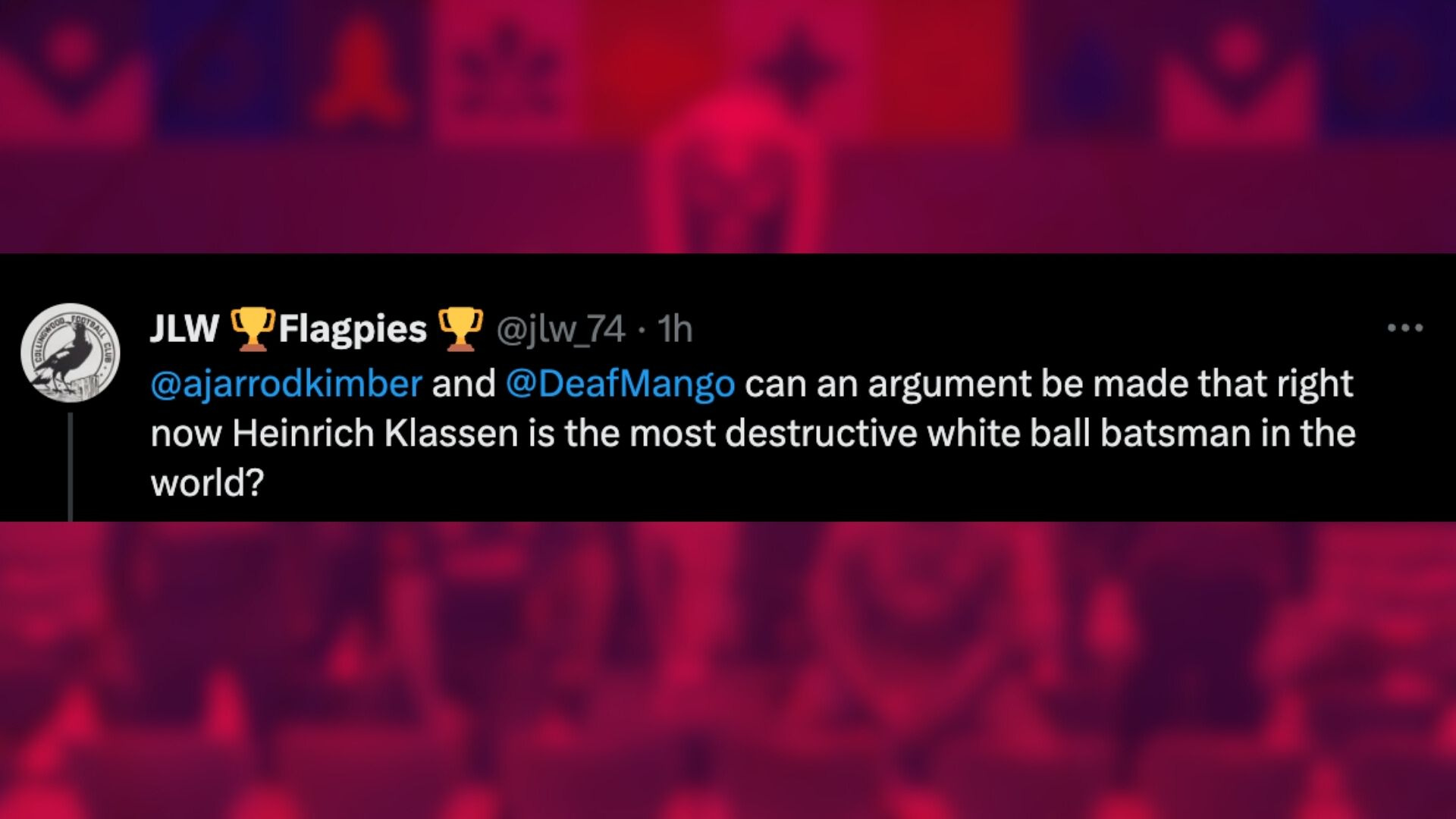 Just crazy how quickly Heinrich Klaasen has turned himself from another cog in the superhero top six and become Dr Manhattan. This tweet is right, while Buttler and Miller still exist, it would be hard to argue that the most destructive batter right now is Klaasen.