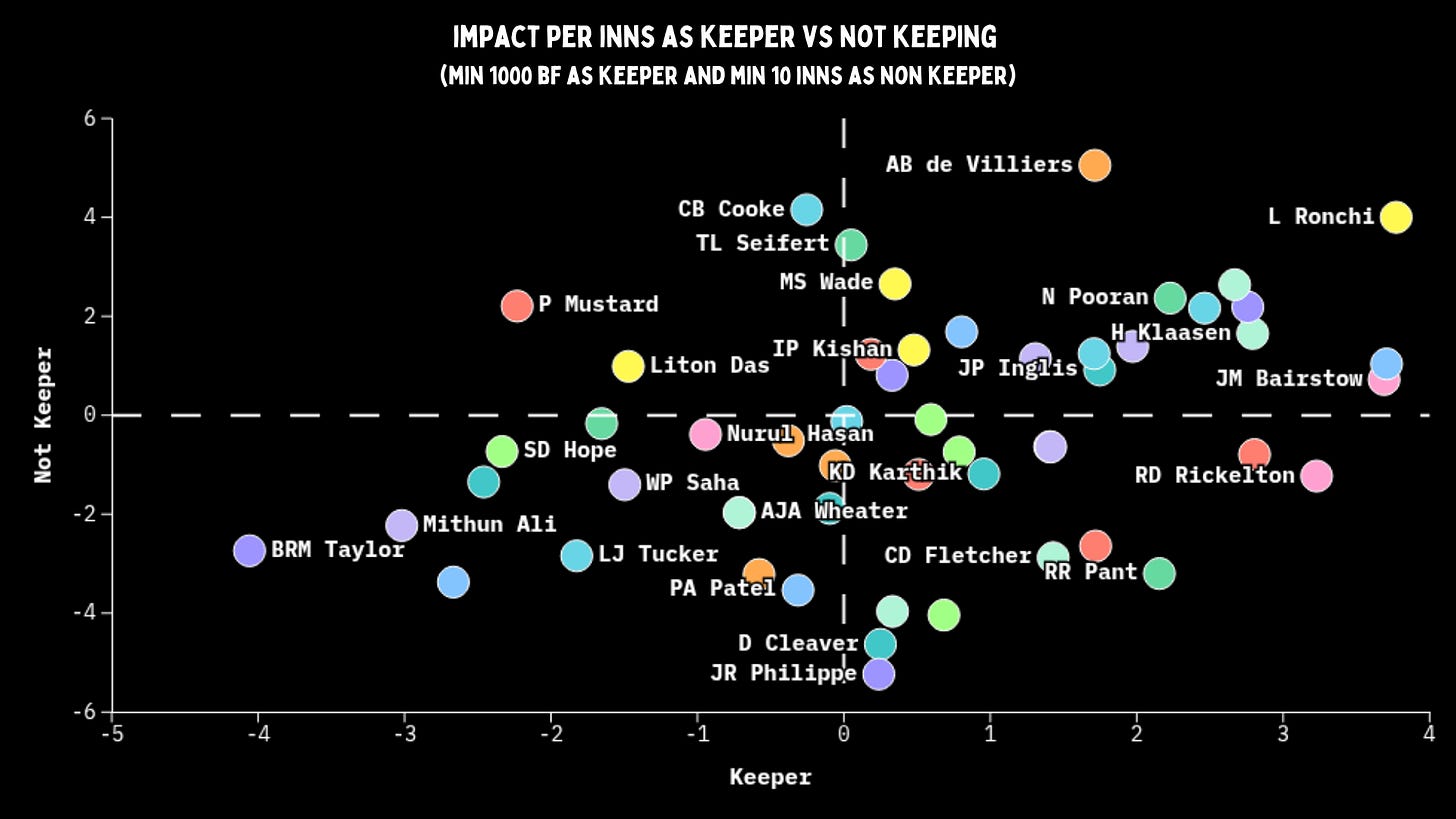 In Test cricket, even the best batting keepers are usually slotted in the lower order as the workload is obviously much higher. But in the shortest format, we see them everywhere in the batting lineup - attacking openers, middle-order spin nappers and gun finishers. Sometimes, they’re not even required to keep wickets as both franchise and international teams can have multiple options.